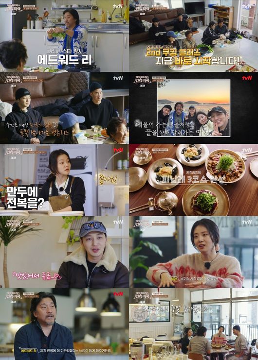 [OSEN=유수연기자]‘에드워드리의컨츄리쿡’의소담스러운맛기행이종료됐다.지난18일(금)방송을끝으로막을내린tvN‘에드워드리의컨츄리쿡(연출김관태)’에서는한국의제철식재료와음식을찾아떠난컨츄리즈가그어떤조미료도흉내낼수없는손맛과따뜻한정을느끼며잊지못할추억의한페이지를장식했다.먼저에드워드리가변요한,고아성,신시아와함께강원도,안동,여수에서다양한식재료를접해눈길을끌었다.강원도에서는대왕문어와양미리,메밀,황태,나물,안동에서는딸기,안동찜닭,간고등어,여수에서는돌게장,쑥디저트,군평선이,홍어,갓등을맛봤다.또한각지역에서의경험을통해영감을얻은에드워드리는창의적인요리를선보이며탄성을자아냈다.물없이삶은문어를구워씨앗젓갈이들어간젓갈치미추리소스와먹는‘味(미)친추리문어구이’,된장,두유,닭,막걸리를넣고끓여잣으로마무리한‘두유라이크된장닭’,딸기소스를곁들인퓨전호떡등번뜩이는아이디어가담겨흥미를끌었다.컨츄리즈는여정동안음식뿐만아니라온정이넘치는사람들과마음을나누기도했다.특히학가산메주마을방문당시에드워드리는할머니들이준비한달래된장찌개와고봉밥,가마솥에익힌수육까지푸짐한밥상에서그리워했던할머니의손맛을느끼고눈물을흘려보는이들을먹먹하게했다.에드워드리도한식을주로드시는할머니들을위해베이컨잼이들어간수제버거를스페셜새참으로선물해훈훈함을배가시켰다.뿐만아니라강원도감자로뇨키를만들었고,여수갓으로미국식삶은갓찜인브레이즈드머스터드그린을만들어보는쿠킹클래스를열어재미를선사했다.선생님으로변신한에드워드리를필두로변요한,고아성,신시아가어르신들을도우며친숙한식재료를색다르게즐기는레시피를전수해의미를더했다.유쾌하고호기심많은에드워드리와그의든든한동생으로열정서포트한변요한,꼼꼼한똑쟁이고아성,먹방최강자‘먹시아’신시아까지멤버들의각양각색캐릭터와하루가지날수록더욱돈독해지는이들의관계가즐거움을안겼다.더불어컨츄리즈는게스트로출연한윤두준,배정남과도유쾌한케미스트리를발산했다.한편,마지막회에서는에드워드리가이번여정에서얻은아이디어와추억이담긴식재료를사용해색다른요리레시피를준비했다.특별한마지막식사를위해여행동안요리실력이성장한변요한,고아성,신시아가메밀국수,쑥전복만두,7층밥케이크를맡았고에드워드리와함께요리를완성했다.마지막만찬은환상적인맛과여행의기억을떠오르게하며감성도잡았다.에드워드리는“제가어렸을때는(정체성이)미국인90%,한국인10%같았다.이여행이끝나가면서어쩌면한국인70%,미국인30%일지도모르겠다는생각도든다”고말했다.그런가하면변요한은“(제가)첫날에오지못해서못먹었던음식들을형과함께만들면서제가없었던시간을같이채워주는느낌이었다.그마음이되게감사했다”고진심을밝혔다.고아성은“과일이요리에들어가는걸정말안좋아했다.근데셰프님이제가가지고있던편견을확깨주신것같다”,신시아는“실패든성공이든그게다과정이라고하셨다.(요리하는)과정을즐기는방법을배우게된것같다”고소감을전했다.이처럼한국의맛과문화를섭렵하며금요일밤힐링을선사했던tvN‘에드워드리의컨츄리쿡’은지난18일(금)종영했다./[email protected]©OSEN.무단전재및재배포금지.