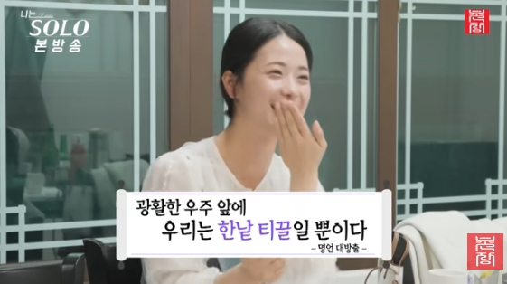[스타뉴스|김정주기자]/사진=유튜브채널'촌장엔터테인먼트TV''나는솔로'30기영자가무던한성격으로출연진들의놀라움을자아냈다.24일공개된유튜브채널'촌장엔터테인먼트TV'에는'나는SOLO]※미방분※30기_나는그저우주의한티끌일뿐...★세상에관심없는극T영자'라는제목의동영상이게재됐다.공개된영상에서영자는영식과의데이트중"저는솔직히말하면세상에관심이없다.광활한우주앞에우리는한낱티끌같은존재다.이렇게한인생살다가끝나는작은존재라서'내가이세상에관심을가진다고한들'이런느낌이다"라고설명했다.그런가하면영자는입소첫날다른여성출연자들이비해현저히작은캐리어를들고나타나시선을모았다.MC송해나는"여태까지제일작다"라고지적했고,이이경역시"저게다라고?"라며놀라움을드러냈다.영자는방을함께쓰는옥순과순자가분주하게짐을푸는사이두사람을멀뚱멀뚱바라보기만했다./사진=유튜브채널'촌장엔터테인먼트TV'이후공용거실에모인출연진들은MBTI를물으며서로의성향을탐색하기시작했다.자신을T라고소개한영자는공감능력이지나치게높아슬픈영화를안본다는옥순의말을듣고"영화를보고우냐"며입을다물지못했다.영자의무덤덤한반응에모두의시선이쏠린가운데현숙은"공감능력이좋으실것같다"라고궁금증을드러냈고,영자는"사회화돼서그런척이라고해야하나.'이분이이런얘기들으면상처받겠다.기분나쁘겠다'는생각은든다"라고답했다.이어"영화도저내용이슬픈게내일은아니지않냐.가짜다.만들어낸이야기다"라고덧붙였다.이에영호는"슬픈걸애초에안보냐"라고물었고,영자는"재미가없다.졸리다.아까도말했듯영상도잘안보고,TV도안보고유튜브도안본다.밥해먹는것만해도시간이간다"라고말해놀라움을안겼다.김정주기자[email protected]©스타뉴스&starnewskorea.com,무단전재및재배포금지