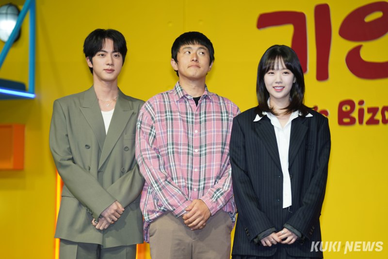 진(왼쪽부터),기안,지예은이15일서울종로구JW메리어트동대문에서열린'대환장기안장'기자간담회에참석해포즈를취하고있다.BTS진이'대환장기안장'의뜨거운반응에대해언급했다.넷플릭스예능'대환장기안장'파트2절찬리영업중간담회가15일동대문JW메리어트호텔에서진행됐다.진은이날기자간담회에서"시상식에서상을받으면보통4~5명이연락을준다"며"(기안장이후)거의처음으로주변지인10명이재미있다고연락을줬다"고말했다.진이15일서울종로구JW메리어트동대문에서열린'대환장기안장'기자간담회에참석해포즈를취하고있다.황윤서(왼쪽부터),정효민PD,기안84,진,지예은,이소민PD가15일서울종로구JW메리어트동대문에서열린'대환장기안장'기자간담회에서발언하고있다.이어그는"대상을받았을때도연락이거의없었다.기안장이접근성이좋아서연락을많이준것같다.제작진과기안84,지예은에게감사하다"고덧붙였다.진이15일서울종로구JW메리어트동대문에서열린'대환장기안장'기자간담회에참석해포즈를취하고있다.진이15일서울종로구JW메리어트동대문에서열린'대환장기안장'기자간담회에참석해포즈를취하고있다.9부작으로제작된'대환장기안장'은기안적사고로흘러가는울릉도기안장에서기안84,진,지예은이숙박객들을맞는기상천외한신개념민박버라이어티프로그램이다.지난8일1~3회가공개됐고,15일오후4~6회가공개된다.유희태기자[email protected]©쿠키뉴스.무단전재및재배포금지.