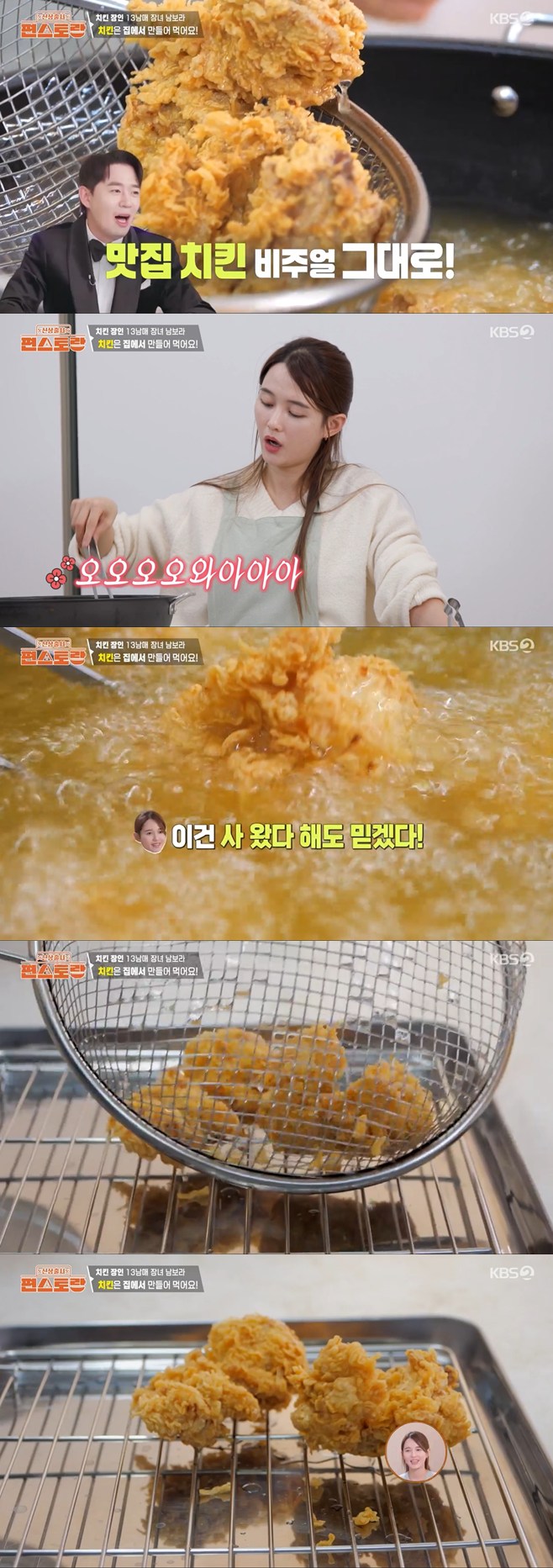 티브이데일리포토[티브이데일리이기은기자]‘편스토랑’13남매남보라,치킨대마왕이었다.11일저녁방송된KBS2예능프로그램‘신상출시편스토랑’에서는결혼앞둔배우남보라동파육치킨덮밥,치킨레시피가공개됐다.남보라는13남매대가족이다.그는“집에서튀겨먹으면저렴하게먹을수있다.저희가대가족이라서사실시켜먹으려면부담이상당해서이렇게직접튀기게됐다”고전했다.실제로그는치킨파우더,찬물등을활용해대용량식용유를넣고치킨을바삭하게잘튀겨냈다.그는“원래제가치킨은되게잘튀긴다”고자부했고,실제로파는곳못지않은비주얼의닭요리가탄생했다.남보라막내동생영일이는양념반,후라이드반닭튀김을몹시맛있게먹었다.이어박은영셰프와함께개발한동파육치킨덮밥역시영일이입맛을제대로저격했다.그는“팔면사먹을것같다”고호평했다.@1이가운데남보라는20살이상차이나는막내남동생을향한유별난애정을드러내길서슴지않았다.그는아직중학생인남동생의학원출석관리까지하는,엄마같은누나였다.남보라는“여자는여자가봐야안다”라며영일이가만나는여자친구는자신이봐야한다고주장했다.이를지켜보던누나많은김재중은기시감이든다며,질색팔색해실소를자아냈다.@1[티브이데일리이기은기자[email protected]][Copyrightⓒ*세계속에新한류를*연예전문온라인미디어티브이데일리(www.tvdaily.co.kr)/무단전재및재배포금지]Copyright©티브이데일리.무단전재및재배포금지.