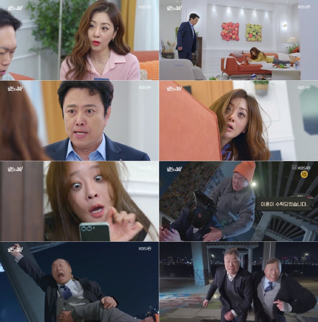 KBS방송캡처사주에진심인오나라가소유진을지키기위해나섰다.지난9일방송된KBS2수목시트콤‘빌런의나라’(연출김영조,최정은/극본채우,박광연/제작스튜디오플럼)13,14회에서는예측할수없는오나라(오나라분)의일상이그려지며시청자들의웃음을저격했다.이날방송된13회에서나라는송진우(송진우분)가추천한휴대폰게임에푹빠졌고,서현철(서현철분)은집안일도하지않은채게임에몰두하는나라에게불만을표출했다.이어나라의게임알림을본현철은그녀가게임속남편과애정어린메시지를주고받았다는사실에분노했다.결국화가난현철은나라의휴대폰을금욕상자에집어넣고자물쇠를채워폭소를유발했다.현철은나라의휴대폰을들고출근했고게임속남편이하트를보내자진우에게화풀이했다.진우는게임에서도이혼할수있다고달래보았지만,남편캐릭터가이혼요청을거절하자당황했다.질투심에사로잡힌현철은게임속남편을직접만나끝장을보겠다고결심했다.게임을포기하지못한나라는5년전쓰던휴대폰까지찾아내다시게임에접속했다.이를본오유진(소유진분)은나라의중독을치료하기위해그녀의행동을따라하며미러링했고,충격을받은나라는즉시게임을끊었다.현철은게임속남편과맞붙기위해한강으로향했지만,그인물이다름아닌김상무(김덕현분)라는사실에당황했다.김상무가게임속나라의남편이라는걸안현철은검은비닐봉지를뒤집어쓴채덤볐고,그의휴대폰을빼앗아이혼요청을수락했다.들킬위기에처하던순간,얼굴에스타킹을뒤집어쓴진우가등장해현철을도왔고둘이함께도망치는장면은큰웃음을자아냈다.KBS방송캡처14회에서는나라가휴대폰앱으로사주를보는일상이그려졌다.가족들은미신을맹신하는나라의태도를못마땅해했지만,나라는“사주는과학”이라며가족들에게강요했다.특히유진의내일운세를본나라는망신살,양인살,급살이낀다며자중할것을요구했다.그러나다음날홈쇼핑생방송에서요리를맡게된유진은나라의말을무시했고“계단같이오르내리는것에많은주의가필요하다”는경고도흘려들었다.승부욕이불탄유진은일부러계단을오르며나라의말을반박하려했지만,화장실신호에당황하며결국계단에주저앉고말았다.이때검은봉지를발견한유진은그안에볼일을보는대참사를벌여모두를경악케했다.유진은나라가악취에반응하자“나니까닥쳐”라고외쳐폭소를유발했다.생방송당일,나라는유진이외출하지못하도록현관문을막고감시했다.집착에지친유진은몰래홈쇼핑촬영장으로향했지만,이내유진의‘보호색’인빨간색옷을입은나라가나타나자당황했다.생방송현장은순식간에아수라장이되었고,결국유진은나라에게두손을들었다.흥미진진한나라네일상이안방극장웃음을책임진가운데,빌런자매가또어떤재밌는에피소드를선보일지다음회에대한기대감을자극하고있다.수목시트콤‘빌런의나라’15,16회는10일밤9시50분방송된다.손봉석기자[email protected]©스포츠경향.무단전재및재배포금지.