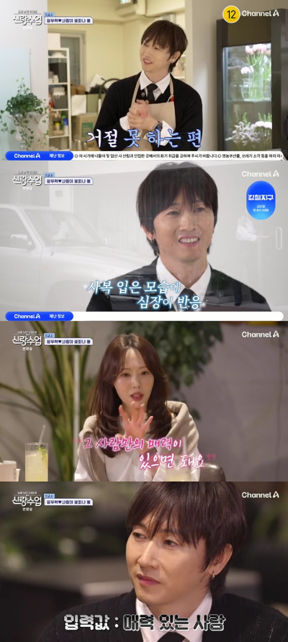 [스타뉴스|김나연기자]사진=채널A신랑수업가수장우혁이띠동갑플로리스트와자연스러운만남을가졌다.9일오후9시30분방송된채널A'요즘남자라이프-신랑수업(이하'신랑수업')'158회에서는장우혁이분갈이를겸한'자만추'에나섰다.이날장우혁은봄맞이분갈이를위해지인에게플로리스트를소개받아한꽃집으로향했다.장우혁은플로리스트허소영에게분갈이를청했고,커피를마셨다.이다해는"장우혁씨이상형이신애라씨라고하지않았냐.신애라씨와하희라씨이미지도살짝있는것같다"고말했다.허소영씨는90년생말띠라고나이를밝혔고,장우혁과띠동갑이었다.그는"김종민의예비신부인'히융'(애칭)씨랑동갑이다"라고했고,김종민은"우혁이형과내가잘맞고,여자친구들끼리도(나이가)잘맞으니까같이(데이트)하면되겠다"고말했다.두사람은분갈이를하며의도치않은스킨십을했고,장우혁은꽃집창가쪽레일등이고장난것을발견해"전등을교체해주겠다"고제안했다.장우혁은능숙하게레일등을교체하는가하면수전이흔들리는것을확인한뒤자신의차에서공구함을가져와새수전으로갈아끼워줬다.급기야그는싱크대주위를실리콘으로도포하며깔끔한마감기술까지선보여감탄을안겼다.이에허소영씨가"너무고생하셔서제가뭐라도좀해드려야할것같다"면서식사를제안했다.장우혁은사복을입은그의모습을보고"정리하고일터에서나오는순간선생님에서소영씨가됐다"고말했다.허소영씨는이상형에대해"기본적으로는선한분을좋아한다.바보처럼착하기만한느낌보다는의도가선한분들"이라며"그외에는사실그사람만의매력이있으면괜찮다.어떤일이든자기일에열정있는분이멋있어보인다"고했다.이어"나이가너무어리거나너무많아서공통의관심사가안맞다거나제약이많으면관계가깊어지기는어렵다고생각하는데서로관심사가맞다며상관없다"고했고,장우혁은"분갈이하러왔지만,수전고친게더기쁘다.다음에또시간이있을까요?"라고애프터를신청했다.김나연기자[email protected]©스타뉴스&starnewskorea.com,무단전재및재배포금지