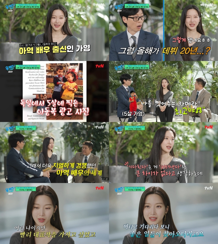 tvN예능‘유퀴즈온더블럭’배우문가영이아역시절을회상했다。9일방송된tvN예능‘유퀴즈온더블럭’(이하‘유퀴즈’)에는문가영이게스트로출연했다.이날유재석은문가영에대해“아시는분들은아시지만,가영씨가아역배우도데뷔했다.‘왕가네식구들’‘질투의화신’등에출연했다”고설명했다.문가영은2006년‘스승의은혜’로데뷔해2013년‘왕가네식구들’2016년‘질투의화신’에출연하며배우로서입지를다졌다.유재석은“가영씨가아역배우로활동한시기가박은빈,이세영,여진구등이활동한아역의황금시대”이라고덧붙였다.이날문가영은아역배우를시작한계기에대해“독일에살당시동양인이많이없었다.그때어린이의류광고모델로길거리캐스팅을당했다.주목받는걸좋아한거같다”고밝혔다‘조바심이나초조함은없었나’라는물음에는“내가활동했을때가아역의황금시대였기때문에치열한오디션을거쳐야했다.내가아역한걸사람들이잘모르는것도그때특별히잘되거나각인되지않아서라고생각한다.그자리에꾸준히버티며기다리면항상때가오더라”라고소신을전했다.。장정윤온라인기자[email protected]©스포츠경향.무단전재및재배포금지.