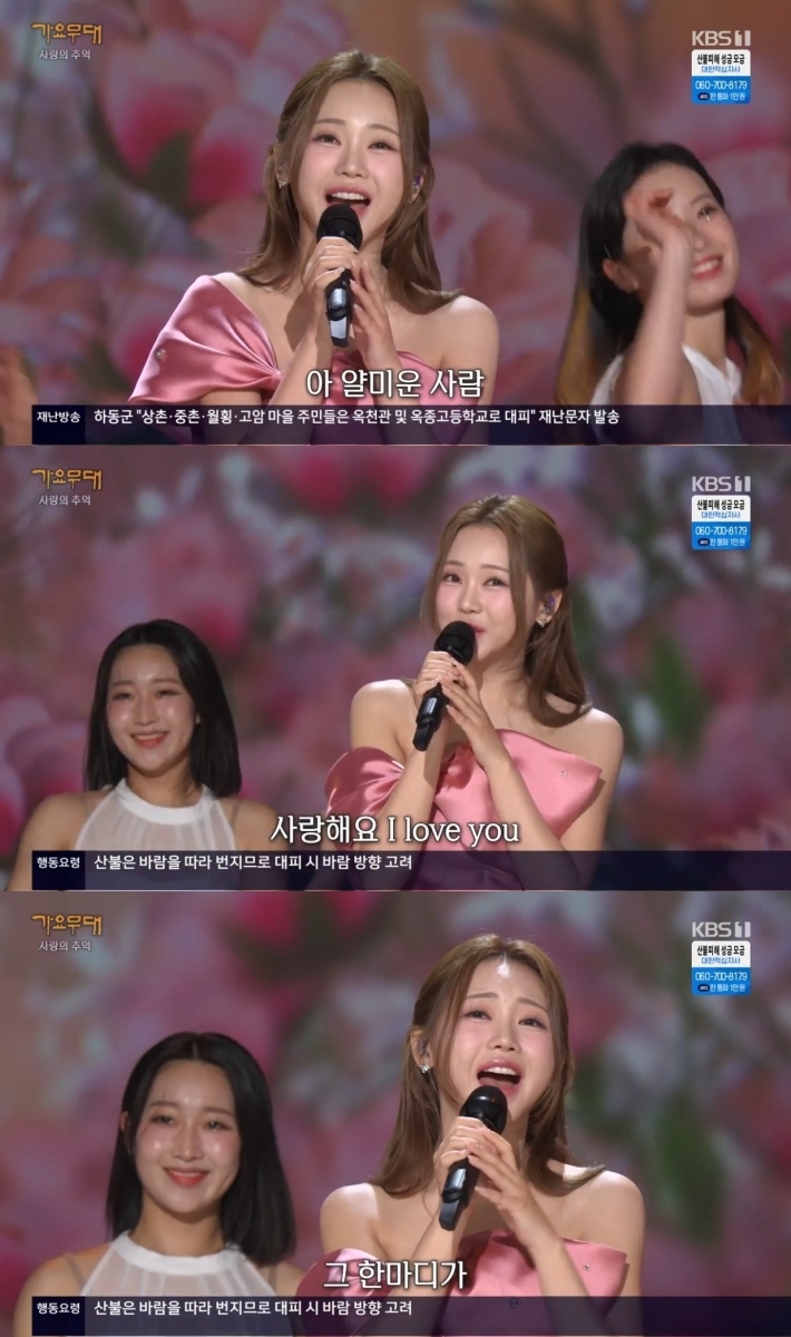 KBS방송화면캡처가수홍지윤이러블리한매력으로월요일밤을가득채웠다.홍지윤은지난7일방송된KBS1‘가요무대’에출연해‘러브레터’무대를선보였다.이날홍지윤은‘사랑의추억’으로꾸며진‘가요무대에서주현미원곡의’러브레터‘를선곡했다.어깨라인이드러나는핑크컬러의드레스에커다란리본으로포인트를준홍지윤은러블리한매력을발산하며무대에등장했다.홍지윤은사랑스러운표정과눈빛으로몰입도를더하며월요일밤을설렘으로물들였다.독보적인가창력과함께간드러지는음색,폭발적인고음으로듣는맛을더한홍지윤은직관적인제스처와안무로마지막까지보는재미를더했다.홍지윤은현재KBS2‘신상출시편스토랑’,tvNSTORY‘잘생긴트롯’등방송프로그램을통해활약을펼치고있고,다양한콘텐츠를통해팬들과만나고있다.손봉석기자[email protected]©스포츠경향.무단전재및재배포금지.