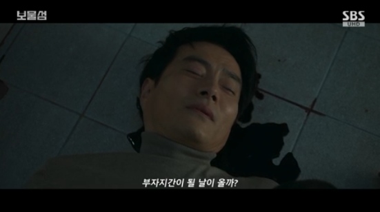 방송화면캡쳐[OSEN=김예솔기자]이해영이박형식을구했다.4일방송된SBS금토드라마‘보물섬’에서는허일도(이해영)이서동주(박형식)를구하고죽음을맞았다.염장선(허준호)은차강천(우현)에게서동주가허일도의아들이라는사실을이야기했다.염장선은허일도가이를일부러숨기려했다며서동주가지선우(차우민)를넘어뜨리려할거라고경고했다.방송화면캡쳐염장선은"서상무가내컴퓨터를해킹해서나라사랑기금을몽땅가져갔다.나라사랑기금을입맛대로휘두르면서나를제끼고어르신을독대하고있다"라고말했다.또허일도와여순호를언급하며비밀을이야기하는모습을보여긴장감을자아냈다.차강천은서동주에게"우리선우의장점,단점이뭐냐"라고물었다.서동주는"선우는아직그림을그리지않은하얀캔버스같은무궁무진한아이다"라고말했다.또,서동주는지선우를회장과똑같이모시겠다고말했다.방송화면캡쳐차강천은서동주에게"아버지를뵌적있나"라며"살아계실때한번은봬야지"라고의미심장하게이야기했다.서동주는차강천에게내실금고바꾸기전비밀번호를건넸다.서동주를의심했던차강천은자신이갖고있는금고번호와동일하다는사실을확인했다.하지만서동주는허일도에게"지금금고비밀번호는내머릿속에있다"라고말했다.서동주는허일도에게누구의편에설것이냐고물었고허일도는서동주에게염장선과연을끊었다고말했다.방송화면캡쳐차강천은서동주에게전화를걸어허일도와서동주가부자관계라는사실을알게됐다고말했다.차강천은"셋이술한잔하자.마음편하게서상무집에서보자.나한테비싼와인이있는데내일따서마시자"라고말했다.서동주는"나를죽이려고했던일로참회하지않으셨으면좋겠다.계속참회하는모습을보이시니까못본척힘들다.회장님오시면아버지,아들화해하고잘지내라고하실텐데나는죽어도그렇게못한다고할거다"라고말했다.방송화면캡쳐허일도는"지금까지참회하는마음이생기지않도록조심하면서살았다"라며"나는그일로가족과지위를얻었다.참회하면포기해야한다.포기하지않는참회는가짜다.그래서참회하지않으려고애썼다"라고말했다.허일도는서동주가준힘덕분에염장선을넘어서게됐다고이야기했다.서동주는"우리가아버지노릇,아들노릇잘하는사이였다면어떤대화를나눴겠나.아버지건강잘챙기세요아들아끼니잘챙겨먹어라"라고말했다.허일도는"우리가그런사소한이야기를나누는부자지간이될날이올까"라고말했다.방송화면캡쳐방송화면캡쳐서동주는"꿈도꾸지마시라.그건절대로불가능하다"라고말했다.서동주는집에있는위스키를찾아보겠다고말햇다.그런데이때벨이울렸고허일도는서강천이라고생각하고문을열었다.하지만그는조양춘(김기무)이엇고조양춘은허일도를칼로찌른후서동주까지공격하려고했다.조양춘이일격을날리려는순간허일도가이를막았고허일도는서동주대신칼에찔리면서조양춘과함께2층에서바닥으로몸을날려결국사망했다./[email protected][사진:SBS금토드라마‘보물섬’방송캡쳐]Copyright©OSEN.무단전재및재배포금지.