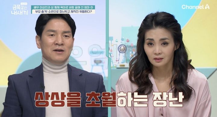 [서울=뉴시스]지난28일방송된채널A'요즘육아-금쪽같은내새끼'에서삼형제를키우며위기에놓인이상인부부의마지막이야기가공개됐다.(사진=채널A'요즘육아-금쪽같은내새끼'캡처)[email protected]*재판매및DB금지[서울=뉴시스]신효령기자=탤런트이상인(54)부부가셋째아들의폭력적인모습에충격을받았다.지난28일방송된채널A'요즘육아-금쪽같은내새끼'에서삼형제를키우며위기에놓인이상인부부의마지막이야기가공개됐다.지난14일방송에서이상인의첫째아들이자폐스펙트럼진단을받았다.이날방송에서는정신건강의학과전문의오은영박사는삼형제중셋째를예의주시했다.이상인은2017년11살연하김현정씨와결혼해아들3명을두고있다.부부는8·6·4세삼형제육아를위해경남밀양으로귀향했다.이날방송에서관찰된영상에서첫째와셋째가평화롭게놀던중셋째가다짜고짜달려가첫째의머리를때렸다.알고보니첫째가셋째의책을가지고놀고있었고,이를본셋째가다시뺏으려다실패하자응징한것.아빠가셋째를훈육하자아빠에게주먹을휘두르고호통까지친다.다른영상에서엄마와즐거운시간을보내던셋째는갑자기웃으면서엄마눈을찌르기도했다.엄마의훈육이시작되자괴성을지르는가하면몸을비틀어깨물고,엄마를때리기까지하면서신경전을펼치기시작했다.엄마는셋째를어떻게든제지하려계속훈육을시도했으나,점점통제불능상황으로갔다.이상인부인은"셋째는훈육이통하지않는다"며답답한속마음을토로했다.삼형제중가장기가세고,힘도세고,자존심까지세서고집불통이라고.이를본오은영은"훈육은단호해야한다"고강조했다.이상인부부에게그간적절한훈육이없었다며"이대로크면자기중심적아이로자랄수있다"고경고했다.또다른VCR에서는거실에서이상인부부둘째아들과셋째아들이놀고있는모습이담겼다.부부는이자리에없었다.두아이는'금쪽같은내새끼'제작진에게다가갔다.셋째는장난감을갑자기던졌으며,제작진을이유없이때리기까지했다.카메라를잡고흔들었다.둘째는화장실에서소변을통에넣은뒤제작진에게다가갔다.이어통을떨어뜨리면서바닥에소변을쏟아버렸다.이같은VCR을본이상인부부는충격을받았다.이상인은첫째와함께5㎞마라톤완주에성공했다.이를본오은영은"너무많이울었다"고밝혔다.그러면서"저는자폐스펙트럼아이들이얼마나많은어려움을겪는지너무잘안다"며눈물을흘렸다.이어"부모님이얼마나아이들을걱정하면서많은눈물을흘리는지잘알고있다.마라톤을뛰는데이아이뿐만아니라모든사람의인생을보여준것같다"며울먹였다."살아가면서어려움,고비가있는데그걸누가피해갈수있겠냐.아이가어릴때는부모가앞에서끌어주고뒤에서밀어주고힘들때는옆에있어주고격려해주고,가족이함께옆에서마음을합해주는것이인간의인생을보여준것같아서너무많이울면서봤다"고덧붙였다.오은영은"발달의어려움이있는,자폐스펙트럼아이들도부모님과행복하게산다.이가족이늘불행할것이라고생각하면안된다"고강조했다."어려움이있으면있는대로,부모의역할을어른으로서아이들이안정감갖고살아갈수있도록우리가할수있는것들을하면서편견없이아이들을대할수있었으면좋겠다"고했다.[서울=뉴시스]지난28일방송된채널A'요즘육아-금쪽같은내새끼'에서삼형제를키우며위기에놓인이상인부부의마지막이야기가공개됐다.(사진=채널A'요즘육아-금쪽같은내새끼'캡처)[email protected]*재판매및DB금지☞공감언론뉴시스[email protected]©뉴시스.무단전재및재배포금지.