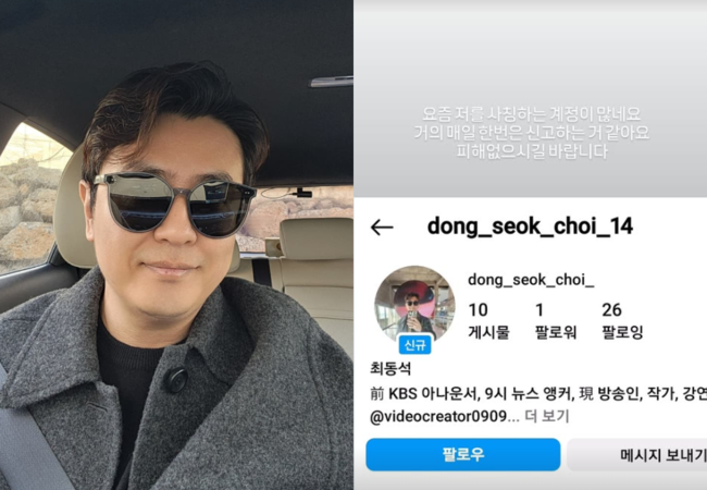 [OSEN=김나연기자]아나운서출신방송인최동석이사칭을경고했다.19일최동석은자신의소셜계정에"요즘저를사칭하는계정이많네요"라고글을올렸다.함께업로드된사진에는최동석의계정을유사하게따라한사칭계정이담겼다.아이디는물론프로필과사진들까지최동석의것을그대로베껴온모습.최동석은"거의매일한번은신고하는거같아요.피해없으시길바랍니다"라며혹시모를사칭피해를경고하기도했다.한편최동석은지난2009년KBS30기아나운서동기박지윤과결혼해슬하에1남1녀를뒀다.하지만지난해10월,결혼14년만에파경소식을전해충격을안겼다.이혼소송과정에서두사람은서로에대해상간소송을제기하기도한두사람은상간의혹에대해사실무근이라는입장을밝혔지만,현재까지도첨예한대립을이어가고있다./[email protected][사진]최동석소셜미디어Copyright©OSEN.무단전재및재배포금지.