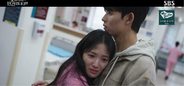 아이즈ize최재욱기자사진='오늘부터인간입니다만'방송영상캡처'오늘부터인간입니다만'김혜윤과로몬의변화한감정에설렘과여운이찾아왔다.지난31일방송된SBS금토드라마'오늘부터인간입니다만'(극본박찬영·조아영,연출김정권)6회에서팔미호(이시우)는은호(김혜윤)를구미호로되돌리고,강시열(로몬)의운명을돌이킬방법을제시했다.바로자신이구미호가되어은호와운명을바꾼후,은호가강시열과현우석(장동주)의운명을바꿔주는것이었다.'금호'에대한슬픈기억때문인지은호는팔미호가인간이되는것을반대했지만,결국"나는내삶을살았어"라고금호가생전남긴말을떠올리며마음을움직였다.5회시청률은최고5.3%를기록했다.(닐슨코리아기준)사진='오늘부터인간입니다만'방송영상캡처팔미호의갑작스러운등장에은호,강시열,현우석사이로미묘한기운이맴돌았다.현우석은은호에게구미호로돌아가지못할수도있는지물었고,은호는그말의속내를짐작한듯"그걸네가왜궁금해하지?"라며날선반응을보였다.그리고팔미호에게현우석의기억을지우도록했다.강시열은그렇게까지할필요가있나싶었지만,은호는현우석의위험한욕망을경계했다.그마저도팔미호의능력치로는현우석의기억이언제다시돌아올지모르기때문에그전까지원래대로돌아가야만했다.팔미호가두사람을위해찾았다는방법은은호와자신의운명을바꾸는것이었다.지금당장은꼬리하나가부족하지만,구미호가된후능력이생긴다면가능한일이었다.그말을듣던은호는팔미호가아닌파군(주진모)의계획임을눈치채며,"한사코인간이되겠다는이야기야?"라고따져물었다.은호와강시열은팔미호가인간이되는문제를두고갑론을박을벌였다.은호는경찰서에데려가인간세상이얼마나무섭고힘든지,강시열은호텔뷔페에데려가인간세상이얼마나즐겁고행복한지설명했다.사진='오늘붜인간입니다만'방송영상캡처하지만팔미호의버킷리스트는따로있었다.인간세상에오면꼭가보고싶었다던놀이공원에은호,강시열이함께따라나섰다.팔미호는아이처럼신난모습이었다.강시열도은호에게"원래대로돌아간뒤에도어쩐지오늘은가끔생각날것같아"라며자신에게특별한하루였다고고백했다.그러던중강시열은은호의새빨개진구두뒤꿈치를보고걱정했다.그리고"어쩌다보니까지금세상에내편이라곤너하나잖아.지금으로써는믿을만한친구도가족도나한텐다너야.그러니까넌내걱정해.네걱정은내가할테니까"라는진심어린고백으로설렘을안겼다.은호는팔미호를보며복잡한생각에잠겼다.인간이되고싶은마음이변함없는지묻자,팔미호는"저는뭔가기억에남는삶을살고싶어요.짧아도강렬한순간을살고싶고요.휩쓸리고떠밀리고때로는울기도웃기도하는진짜삶을살고싶어요.저는불행하고슬프고끝내는죽고야마는인간이되고싶어요"라고답했다.그순간은호는금호가죽기전,"나는내삶을살았어.후회없이.너는네삶을살아.그것이어떤것이든지간에"라고자신에게말해준것을떠올렸다.사진='오늘부터인간입니다만'방송영상캡처은호는팔미호와운명을바꾸기로결심했다.단,강시열과현우석의뒤바뀐운명을되돌리려면팔미호가구미호가되는것이우선이었다.은호는그시간을앞당기기위해팔미호를대신해직접선행을하기로했다.그러나강시열은수단과방법을가리지않는은호식선행을나무랐다.제비의다리를고쳐주기위해,제비의다리를부러뜨리는놀부심보를부리는것이었다.두사람이어김없이티격태격하던그때,근처보육원의화재소식이들려왔다.은호와강시열은건물안에아이들이있다는말에불길속으로뛰어들었다.사진='오늘부터인간입니다만'방송영상캡처방송말미에는병원응급실에서깨어난은호의모습이그려졌다.자신을구하려다위험에처한강시열이보이지않자은호는불안하고불길한생각에휩싸였다.바로그때강시열의목소리가들려왔고,은호는걱정과안도가교차하는눈물을흘리며그의품에안겼다.서로가서로에게유일한존재가된이들의변화가설렘과여운을선사했다.한편여전히두사람을노리는장도철(김태우)과이윤(최승윤)의심상치않은움직임이포착된가운데,반환점을맞은이들의'망생구원'로맨스의향방에더욱귀추가주목된다.SBS금토드라마'오늘부터인간입니다만'은매주금,토요일밤9시50분에방송된다.Copyright©ize&ize.co.kr,무단전재및재배포금지