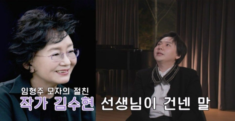 사진=TV조선예능‘팝페라거장’임형주가스타작가김수현과의친분을드러내관심을모은다.25일방송되는TV조선예능‘아빠하고나하고시즌3’에서는인정과칭찬을갈구하며엄마헬렌킴과애증관계를보여주던임형주가뜻밖의고백을전한다.임형주는“요즘드는생각이저렇게잔소리해주는사람은내주변에딱한사람,엄마밖에없다는생각이든다”고밝혔다.이어임형주는임형주모자의절친인‘한국드라마대모’김수현작가가해준조언을떠올렸다.그는“김수현선생님이‘너는어쩜그렇게네엄마마음을모르니.난절대네엄마처럼못해.네가불구덩이들어가면엄마는0.1초만에달려갈거야’라고말씀하셨다.내가죽을때까지엄마마음을모를것같다는생각이들었다”며눈물을흘렸다.임형주는수많은최초,최연소타이틀로세상의인정을다받았지만,소속사대표이자어머니인헬렌킴은“칭찬과응원이안주하게만들것같았다”라며칭찬을아꼈다.임형주가엄마로부터제일많이듣는말은“시끄러”일정도로두사람사이에다정한말은찾아보기어려웠다.결국임형주는자신이아무리칭찬과애정을갈구해도여전히칭찬에인색한어머니에게서러움을토해냈다.그러나알고보니임형주가없는자리에서헬렌킴은아들자랑에여념이없는뜻밖의모습을보였다.임형주의독창회에참석한헬렌킴은무대뒤에서아들을바라보며활짝웃었다.공연뒤포토타임을하는아들뒤로헬렌킴이관객과나눈대화도모두를놀라게했다.임형주어머니헬렌킴이관객에게건넨뜻밖의이야기는본방송에서공개된다.VCR을본전현무는“저런표정으로보시고계셨다”며헬렌킴의반전에깜짝놀랐다.수빈도“자랑많이하신다”며신기해했다.한혜진은“얼마나뿌듯하시겠냐”며엄마의마음에공감하면서도“저런모습보신적있냐”고임형주의반응을궁금해했다.스튜디오에서엄마의모습을처음목격한임형주는“전혀못봤다”고엄마의애정을느끼며눈시울을붉혔다.임형주의눈물을자아낸사연은이날오후10시방송되는‘아빠하고나하고시즌3’에서만날수있다.이주인기자[email protected]©일간스포츠.무단전재및재배포금지.