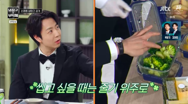 방송시청후작성된리뷰기사입니다.[OSEN=박하영기자]‘냉장고를부탁해’손종원이식단과운동을병행하는등관리하는면모를드러냈다.1일방송된JTBC예능‘냉장고를부탁해’(이하‘냉부해’)에서는‘셰프들의파티’특집을맞아‘2026냉부어워즈’개최와더불어손종원과김풍이게스트로등장했다.이날손종원셰프의냉장고가최초공개됐다.냉장고안에는식재료보다는생수와탄산수,단백질음료와두유등이가득담겨있어눈길을끌었다.박은영은“(재료가)너무없다”,김성주는“결벽증있는거아니냐”라고놀라워했다.이에손종원은“물도사실칼칼한거당길때탄산수를먹는다.기분에따라물을다르게먹는다”라며“하루에4~5L정도마신다”라고밝혔다.칼각으로세워진두유와단백질에대해서는“두유,단백질섞어서먹거나단거당길때는왼쪽에있는맛이다양한단백질음료를먹는다”라고설명했다.셰프들은“인간미가없다”라고반응했다.다른칸에는과일,야채,고기등날짜별로라벨링을붙여보관했다.파인다이닝주방에서볼수있는테이프로손종원은“날짜별로먼저들어온걸써야하니까.사실10년넘게써서붙여있는게마음편하다”고전했다.특히손종원은“두부는식사대용이고파프리카,브로콜리는야식”이라며“밤에식감있는게당긴다.아삭한거먹고싶을때줄기부분이있다.씹는거당길때줄기를먹는다”라며철저한자기관리면모를드러냈다.요리할때도몸이가벼워야한다는손종원은식사대신테이스팅으로칼로리를채운다고밝혔다.그는“몸이무거우면요리할때불편하더라.영업하기전에모든코스다만든다.5분만에다먹어봐야해서그것만으로도칼로리는충분”이라고말했다.다만,손종원은술마실때폭식한다고밝혔다.그는“가끔고삐가풀린다.편의점가서다산다.단먹는순서계산해서산다”라며“고삐풀리면고기4~5인분까지먹는다”라며평소에는자제하는편이라고전했다.또손종원은귀가얇은편이라며“‘냉부해’와서좋아보인다싶으면구매했다.추성훈씨나올때장어도맛있어서샀고,주우재씨나오셨을때팥소절편도샀다.근데막상사놓고잘안먹었다”라고이야기했다.그러자김성주는“집에서요리안하냐”고물었다.손종원은“사실하루종일요리해서”라며배달음식,라면도안먹는다고밝혀감탄을자아냈다./mint1023/@osen.co.kr[사진]‘냉장고를부탁해’방송화면캡처Copyright©OSEN.무단전재및재배포금지.