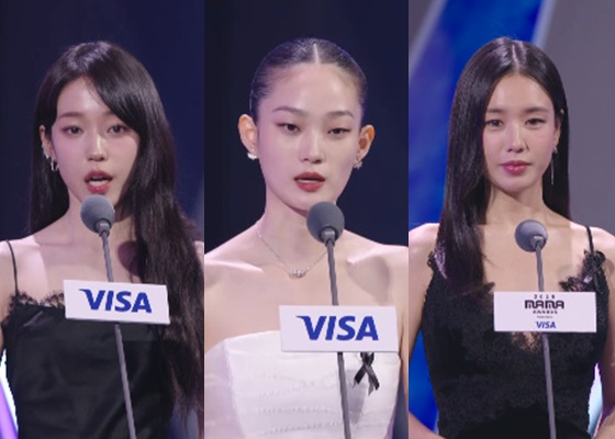 [스타뉴스|최혜진기자]노윤서(왼쪽부터),신현지,안은진/사진=엠넷홍콩화재참사속개최된'2025마마어워즈'(2025MAMAAWARDS,이하'마마')에서시상자들의의상이화제가되고있다.28일홍콩카이탁스타디움에서'마마'챕터1가진행됐다.이날배우노윤서는조한결과함께팬스초이스부문시상자로등장했다.노윤서는애도의뜻을담아검은색드레스를착용했다.조한결은"'마마'를가까이서본건처음이다.무대위아티스트분들과관객석팬들이음악으로얘기를나누는거같다"고말했다.노윤서는"작품속에서수어로연기한적이있는데,말이마음으로통하는마음의소중함을느꼈다.'마마'에서만나는음악이이와비슷한거같다.굳이말로하지않아도진심을전할수있다"며"오늘우리들이마주한슬픔이조금이라도위로받길바란다"고전했다.이어모델신현지는방송인조세호와함께시상자로나섰다.두사람은테라사페이보릿글로벌아티스트부문을시상했다.신현지는하얀드레스를입고모델포스를뽐냈다.그는"앞서행사에서진행을맡기로했는데,이렇게시상을통해위로의메시지를전할수있어다행이다.저도희생자여러분께깊은애도를전한다"고말했다.배우안은진은신인상부문시상자로참여했다.안은진역시노윤서와같이검은색드레스를입고무대에올랐다.시상에앞서안은진은"우리들이만나는음악이용기와힘이되길바라며저의마음도더해본다"며참사에대한깊은애도를표했다.한편외신에따르면지난26일(현지시간)발생한홍콩북부타이포구역의주거용고층아파트단지인'웡푹코트'화재로사망자가100명이육박한것으로집계됐다.이번화재로인해'마마어워즈'레드카펫행사는취소됐다.글로벌시상자로이름을올렸던중화권스타양자경과주윤발은불참을결정했다.최혜진기자[email protected]©스타뉴스&starnewskorea.com,무단전재및재배포금지