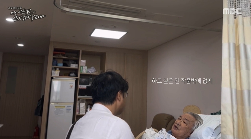 MBC이순재추모다큐영상캡처MBC이순재추모다큐영상캡처[뉴스엔박수인기자]배우고(故)이순재의마지막소원은작품속연기였다.11월28일방송된MBC이순재추모다큐'배우이순재,신세많이졌습니다'에서는지난5월25일병상에누운이순재의모습이공개됐다.영상속병원을찾은소속사대표이승희는"선생님대통령선거하시려고?못하시잖아.그런생각하지말고선생님몸만생각해요"라며"선생님몸건강해지시면하시고싶은거없어요?"라고물었다.이에이순재는"하고싶은건작품밖에없지"라고답했다.이승희대표는"작품은몸건강해지시면하면되고연기말고하고싶은거없어요?(작품은)이제몸회복하시고또천천히준비하시면될것같아요.마음편하게잡수고계세요"라고전했다.뉴스엔박수인abc159@기사제보및보도자료[email protected]ⓒ뉴스엔.무단전재&재배포금지Copyright©뉴스엔.무단전재및재배포금지.
