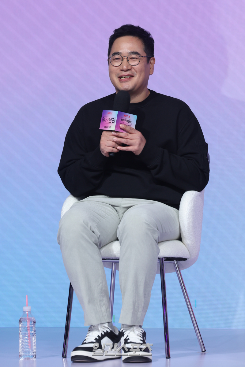 김정식감독이26일오전서울종로구JW메리어트동대문스퀘어서울에서열린넷플릭스오리지널'월간남친'제작발표회에참석해인사말을하고있다.'월간남친'은현실생활에지친웹툰PD‘미래’가가상연애시뮬레이션을통해연애를구독하고체험해보는로망실현로맨틱코미디.오는3월6일공개.서병수기자[email protected]/2026.02.26/김정식감독이블랙핑크지수의연기력과노력을높이평가했다.26일서울종로구JW메리어트동대문스퀘어에서넷플릭스시리즈‘월간남친’기자쇼케이스가열렸다.이날행사에는지수,서인국,김정식감독이참석했다.오는3월6일공개되는‘월간남친’은현실생활에지친웹툰PD미래(지수)가가상연애시뮬레이션을통해연애를구독하고체험해보는로망실현로맨틱코미디다.김정식감독은지수에대해“서미래라는인물에게는무대위에서의모습같은에너지가필요했다”며“작품에는여러장면이있지만,95%이상을지수가이끈다.욕심을내다양한설정과캐릭터성을부여했는데,그모든것을소화해냈다고생각한다”고밝혔다.이어“정말많은노력을보여줬다.저는노력이재능을이길수있다고믿는다”며“이번작품을통해그말을다시한번느꼈다.촬영장도웃으면서시작해웃으면서끝났다”고전했다.서인국캐스팅이유에대해서도설명했다.김감독은“왜서인국이어야했는지는작품을보면알것”이라며“연기폭이다양해야했고,비주얼적인변화도필요했다.쉽지않은신들을촬영해야했는데일정이바쁜상황에서도최선을다해줬다”고말했다.또“연습시간이부족했음에도본인촬영이아닐때도현장에나와지수와함께연습했다”며“선배로서후배를잘이끌어주고,상대배우를배려하는마음이크다.자신을희생할줄아는프로페셔널한배우”라고칭찬했다.이수진기자[email protected]©일간스포츠.무단전재및재배포금지.