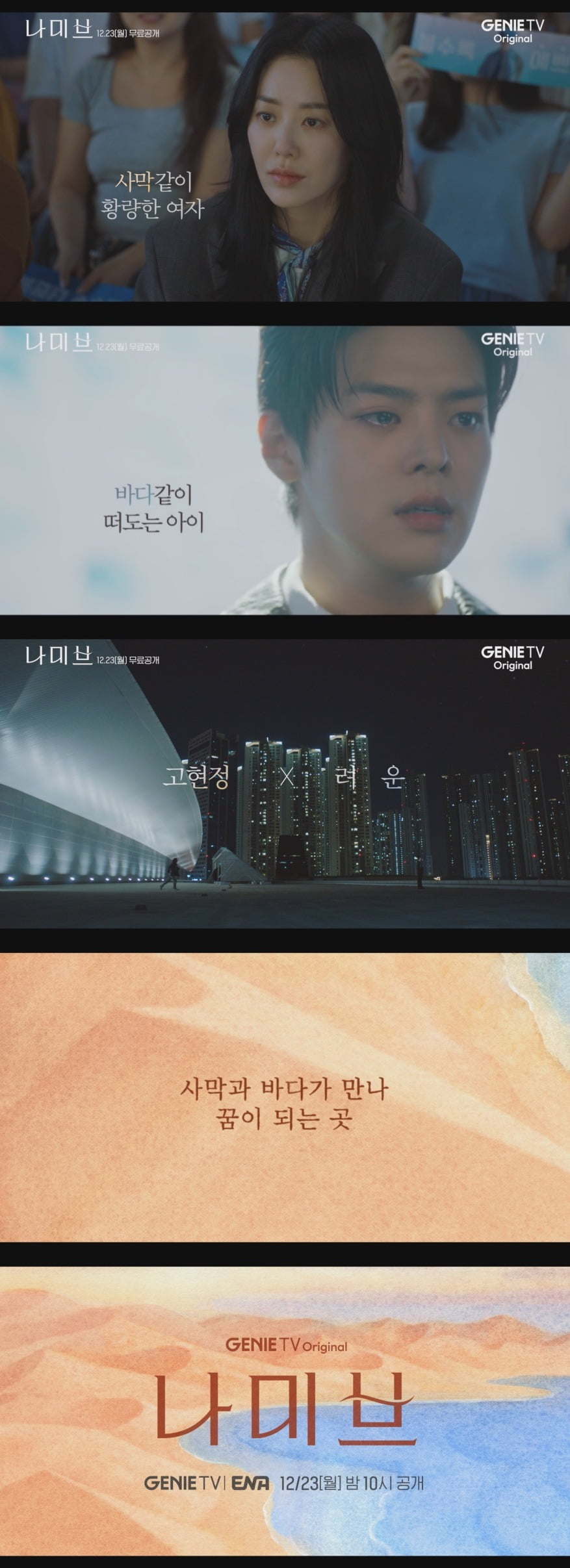 [텐아시아=이소정기자]사진=지니TV오리지널드라마'나미브'제공1971년생고현정과1998년생려운의인생을바꿀강렬한파랑이시작된다.내달첫방송될지니TV오리지널드라마'나미브'에서스타제작자강수현(고현정분)과장기연습생유진우(려운분)의강렬한눈맞춤이담긴1차티저영상을공개,두사람의삶에닥칠파도를예고하고있다.사막과바다가맞닿은나미브사막의풍경으로포문을연1차티저영상은극중사막같이황량한여자강수현과바다처럼떠도는아이유진우의만남으로시선을사로잡는다.파도가몰아치는그림앞에선유진우와그런그를바라보는강수현의위로비친노란조명은나미브사막의풍경을연상케한다.무미건조한강수현과쉴새없이일렁거리는유진우의눈빛대비가두사람의조화를더욱궁금하게만든다.'사막과바다가만나꿈이되는곳'이라는1차티저영상속문구처럼정반대의성질을가진이들이만나목표를이룰수있을지이목이집중된다.강수현과유진우의멘토,멘티프로젝트를그려낼고현정(강수현역)과려운(유진우역)의케미스트리에도관심이모아진다.표정만으로장면을꽉채우며여운을남기고있는만큼고현정과려운이함께완성할'나미브'첫방송이기대되고있다.해고된스타제작자강수현과방출된장기연습생유진우가만나각자의목표를위해나아가는이야기를담은'나미브'는12월23일(월)밤10시지니TV,지니TV모바일,ENA를통해첫방송된다.이소정텐아시아기자[email protected]©텐아시아.무단전재및재배포금지.