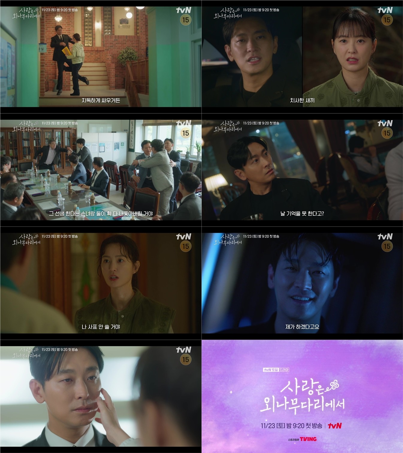 [Dispatch=김다은기자]배우주지훈과정유미가원수로맨스를시작한다.tvN측은11일새토일드라마'사랑은외나무다리에서'의1회예고편을공개했다.석지원(주지훈분)과윤지원(정유미분)이서사와스토리를예고했다.영상은석지원과윤지원의대를잇는악연으로시작된다.두사람은교정에서어깨를치고지나가고,정강이를걷어차는등끊임없이티격태격한다.3대의악연을귀띔했다.석지원의아버지석경태(이병준분)는윤지원의아버지윤재호(김갑수분)에대한복수심을불태운다.석지원과윤지원또한전쟁을선포한다.'사랑은외나무다리에서'는철천지원수들의전쟁같은로맨스다.원수의집안에서같은날같은이름으로태어난남자석지원과여자윤지원이재회한다.'사랑은외나무다리에서'는오는23일오후9시20분에첫방송한다.<사진제공=tvN>Copyright©디스패치.무단전재및재배포금지.