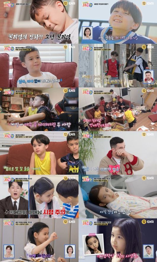 [OSEN=선미경기자]'내아이의사생활'샘해밍턴의장남윌리엄의여자친구가공개됐다.또윌리엄과벤틀리의진솔한마음을알게된아빠샘해밍턴은결국눈물을보이기도했다.지난9일방송된케이블채널ENA예능프로그램‘내아이의사생활’(이하‘내생활’)10회에서는엄마,아빠없이하루를보낸윌리엄,벤틀리와남사친과치과나들이에도전한다인이의이야기가그려졌다.부모의품을벗어나자신들에게주어진도전과제를의젓하게수행하는아이들의모습에시청자들도대견함을느끼는시간이었다.이날오랜만에방송출연으로시청자들과만난윌리엄과벤틀리는훌쩍큰근황으로모두를놀라게했다.어린시절부터아이들을지켜봐온장윤정은두눈을의심하며“오빠가됐네”라고이야기했다.훌쩍큰만큼독립심도강해진아이들이최근가장하고싶어하는것은엄마,아빠가정해놓은규칙을벗어나는것.급기야“엄마,아빠없이지내고싶다”고말한아이들을위해샘해밍턴부부는아이들만의시간을선물했다.부모님없이맞이한아침에벤틀리는울면서엄마를찾았다.그러나장남윌리엄은책임감있게동생을챙기며의젓하게등교준비를했다.벤틀리가“학교가지말래?”라고달콤한유혹의말을던졌지만,여기에굴하지않고아침밥부터동생준비물까지챙겨주는윌리엄의모습에모두가감탄했다.비록좌충우돌을겪으며지각을하긴했지만,두손꼭잡고등교하는아이들의우애가보는이들로하여금엄마미소를짓게했다.학교에다녀온뒤아이들은본격적으로집에서보내는둘만의시간을즐겼다.게임을실컷하고,계단에상자를붙여미끄럼틀을만드는등하고싶었던일들을마음껏하는아이들이귀여워웃음을자아냈다.둘이서만이를즐기기에아쉬웠던아이들은친구들까지초대했다.어른이없는집에놀러가는게처음이었던윌벤의친구들도에너지를마음껏발산하며신나게뛰어놀았다.아이들이즐거워할수록점점난장판이되어가는집안모습에스튜디오의샘해밍턴부부는경악하며웃음을터뜨렸다.이과정에서윌리엄의여자친구가공개되기도했다.친구중한명이냉장고에붙어있던윌리엄을향한연애편지를발견한것.친구들에게는여자친구의이름을말해주는윌리엄을보며샘해밍턴은“우리한테는편지를누가보낸건지모른다고했다”고놀라워했다.친구들이돌아간뒤윌리엄은지친몸을이끌고집정리에동생씻는것까지챙기고침대에몸을뉘었다.생애처음으로부모님없이하루를보낸아이들은엄마,아빠의소중함을깨닫고,“보고싶다”며그리워했다.“엄마,아빠오면백년동안살자고할까?”라는윌리엄의질문에“아니천년”이라고말하는벤틀리의대답은샘해밍턴부부의마음까지뭉클하게했다.샘해밍턴은“원래는아이들이애정표현을잘안한다.‘아빠언제죽어?’이런이야기만했는데,천년동안같이살고싶다고말하는걸들으니뿌듯하다”고감동했다.부모님이돌아온뒤,잠에서깨엄마를본윌리엄은울음을터뜨렸다.하루종일장남으로서책임감을가지고의젓하게굴던윌리엄이엄마앞에서다시아기가됐다.자신도어리지만,자기보다어린동생을돌보고부모님과의약속을모두지킨기특한윌리엄을보며스튜디오안어른들의코끝도찡해졌다.특히샘해밍턴은눈물을보이며윌리엄의마음에공감했다.이제는엄마,아빠말을더잘들을것같다는아이들의다짐을끝으로우여곡절가득했던‘윌벤홀로집에’하루가종료됐다.이어박정철의외동딸다인이가대성통곡하는모습이그려졌다.딸바보아빠박정철도그런다인이를달래기보다는단호하게대처해무슨일인지궁금증을자아냈다.이는이가흔들리면서도치과에가길거부하는다인이를설득하는과정에생긴소동이었다.결국“이를뽑지않겠다”는부모님의약속에“뽑으면벌금5만원넘게내야해”라는조건까지걸고치과에가기로한다인이.그런다인이를위해박정철부부는치과의사엄마를둔다인이의남사친현이를소환했다.현이는다인이의인생첫남사친으로,평소가족들끼리도자주만날만큼가까운사이라고.치과에가기싫어서눈물을터뜨리던다인이는치과가는길에나타난현이를보며웃음을되찾았다.다인이를챙겨치과가는길을리드하는현이의의젓한모습에스튜디오안모두가놀라워했다.손까지잡고가는아이들을보며오직박정철만이“손은굳이왜잡는거야?”라며못마땅해해웃음을자아냈다.현이는치과에서진료를기다리는다인이의긴장을풀어주려장난을치고,말을걸어줬다.점점아이들의거리가가까워지고,알콩달콩한분위기에박정철은“너무가까운거아니야?”라며격정적으로반응했다.현이의머리카락을만지는다인이를보며그는“좀충격적인데?”라고두눈을의심하기도했다.현이의엄마이자,치과의사선생님이다가오고다인이는다시긴장하기시작했다.그러나먼저나서서모든진료과정에시범을보여주는현이덕분에다인이도무사히진료를마칠수있었다.다행히흔들리는이는큰문제는없었고,약속대로발치를하지않고치과를나온다인이.집에가는길에현이와함께중국집에들러자장면을먹던중자연스럽게이가빠져해피엔딩을맞이했다.무사히치과에잘다녀온다인이를위해‘이빨요정’으로변신한박정철부부는아이에게휴대폰을선물했다.엄마,아빠가정해준사용시간이아님에도불구하고휴대폰을몰래챙긴다인이가셀카를찍으며행