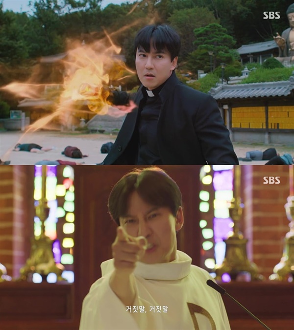 [리뷰]SBS열혈사제2>[김상화칼럼니스트]▲SBS'열혈사제2'ⓒSBS무려5년에걸친기다림은결코헛되지않았다.지난2019년인기리에방영된SBS코믹액션활극<열혈사제>가무려5년만에시즌2로돌아왔다.지난8일첫방영된<열혈사제2>(박보람김종환연출/박재범극본)는시즌1의주역대부분이합류해시리즈의정통성을계승했고,시청자들이그토록보고싶었던정의의불주먹을다시한번날리기시작했다.SBS금토드라마의기본골격인범죄소탕과코믹이결합된화끈한액션드라마의틀을가장잘만들어준작품의귀환이다.올해하반기거침없는시청률고공행진을펼친전작들이상의인기몰이가예상됐다.분노조절장애를겪는열혈신부'미카엘'김해일(김남길분)과든든한조력자들인박경선검사(이하늬),구대영형사(김성균)가또한번힘을합친이번<열혈사제2>가만난악의무리는마약조직이다.최근사회적문제로확산되고있는마약범죄를뿌리뽑기위해'미카엘'신부는여전히참을수없는분노의주먹을첫회부터거침없이휘두르며확실하게보는이들을사로잡았다.하지만이번에만나는조직은그렇게호락호락한세력은아닌모양이다.썩어빠진공권력과결탁해세력을넓히고있는악당들을과연우리들의신부님은과연어떻게맞서싸울까?오늘도평화로운(?)구담구식구들▲SBS'열혈사제2'ⓒSBS시즌1으로부터5년이지난지금,서울구담구를중심으로신부님과그의동료들은각자의삶을살아가고있었다.구담경찰서팀장구대영은골프도즐기는여유를가졌고미국연수를간박경선은향수병을핑계삼아호텔에서화려한휴식을보내고있다.물론우리들의사제,김해일은아예스님으로변장해조폭들을한방에때려눕히는등평상시처럼열심히불주먹으로악당소탕에여념이없었다.하지만조용하던이곳에도범죄의썩은비린내가조금씩풍겨나기시작했다.성당에서복사(신부·사제를돕는어린소년)를맡고있던중학생이상연(문우진)이고이영준신부(정동환)추모미사도중의식을잃고쓰러지는일이발생했다.해일이황급히등에업고병원응급실로향했지만혼수상태에빠진상연은뇌손상이의심될만큼심각한상황에놓이고말았다.그리고소년을중태로만든이유는충격적이었다.마약의한종류인헤파닐중독이원인이라는것이었다.선천성심장병을앓아온모범생상연이직접마약을했을가능성은극히희박했기에김해일신부는경찰과함께조사에돌입했다.마약카르텔조직의본격등장▲SBS'열혈사제2'ⓒSBS그런데이과정에서대검마약수사팀이급파돼수사기록일체를모두가져가는당황스런일이빚어진다.이를두고김신부는"이런류의마약수사는지역조사가원칙이다.근데대검수사관들이마약왕이라도잡는것처럼움직이고있다.터진걸막으려하거나뭔가를덮으려고하거나둘중하나다"면서의구심을감추지못했다.그무렵김해일신부는부산교구청으로부터그쪽신학교학생들을가르쳐달라는요청을받고있었다.처음엔이를고사했지만구담구에서벌어진일련의마약사건의시작이부산이라는것을알게된그는결국이를때려잡기위해주위사람들의만류에도아랑곳없이먼길을떠나기로마음먹는다.태국에서마약카르텔의우두머리로성장한김홍식(성준)이비행기를타고한국으로돌아왔다.불우한환경속에온갖범죄를일삼는악질중의악질로자라온홍식은첫등장부터예사롭지않은분위기를내뿜었다.마약조직과공생하는부산지역경찰과의만남에서단번에형사한명을해치우는잔혹함을드러내는등미카엘신부와구형사가반드시잡아내야할메인빌런다운모습을이번2회차에서부터보여주기시작했다.여전히유효한신부님의정의구현▲SBS'열혈사제2'ⓒSBS<열혈사제2>는일단첫회부터시청자들의뜨거운호응속에성공적인시작을알렸다.1회와2회부터높은시청률과화제성으로작품의후속시즌으로서기대를확실하게충족시켰다.전작의주요인물뿐만아니라작가가시즌2에도고스란하합류해연속성을유지했다는점은작품의완성도를유지할수있는핵심역할을톡톡히담당해준다.앞뒤가리지않고악을처단하는미카엘/김해일신부를둘러싼숨겨진비밀이드러나는가하면향후그에게위험이닥칠수도있음을암시하는부분,청년시절의그를쏙빼닮은부제(사제서품을받기위한수련과정에있는사람)채도우(서범준)의등장등은향후전개될이야기에서중요한몫을담당할것으로기대감을높였다.전작<지옥에서온판사>와마찬가지로<열혈사제2>는악과범죄를소탕하는공권력밖에놓인주인공의활약상을그리면서SBS금토드라마의주된주제인'정의구현'을고스란히계승하고있다.그시작점에놓인작품답게주연배우김남길의저돌적인맨몸액션과주요배우들의코믹연기가좋은합을이루면서경쟁채널대비우위를손쉽게점유할수있었다.법의틀을넘어선범죄집단의위협에결코물러서지않는신부님의저돌적인반격은5년의시간이지났지만여전히유효하다는것을입증했다.시즌제드라마의모범사례를또한번완성할것으로전망되는<열혈사제2>의반가운등장에힘입어SBS금토드라마는일찌감치성공작한편을새롭게추가했다.덧붙이는글|이기사는김상화칼럼니스트의개인블로그(https://blog.naver.com/jazzkid)에도실립니다.Copyright©오마이뉴스.무단전재및재배포금지.
