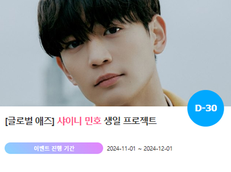 무지개별많이모일수록여러장소에축하광고게시아이돌팬덤의놀이터'팬앤스타'에서1일샤이니멤버민호생일축하프로젝트를진행하고있다./팬앤스타[더팩트|최주빈기자]"해피민호데이!"아이돌주간랭킹사이트'팬앤스타'에서1일부터샤이니멤버민호생일축하를위해깜짝서포트이벤트를진행하고있다.그의생일을축하하는광고가여러장소에게시되는글로벌팬심프로젝트다.민호생일축하프로젝트는팬들이기부하는무지개별(사이트에서모을수있는포인트)개수로성공이확정된다.별2만개이상모이면축하광고가진행된다.별5만5천개가되면서울지하철합정역CM보드에서축하영상이상영된다.별5만개가모이면일본도쿄신주쿠신오쿠보전광판에도축하영상이나간다.이밖에도홍대M스크린,잠실대형디지털전광판,서울버스광고등초특급선물이준비돼있다.이벤트는오는12월1일까지이어지며'팬앤스타'홈페이지내'애즈닷'(ADs.)코너에서참여할수있다[email protected]발로뛰는더팩트는24시간여러분의제보를기다립니다.▶카카오톡:'더팩트제보'검색▶이메일:[email protected]▶뉴스홈페이지:http://talk.tf.co.kr/bbs/report/writeCopyright©더팩트.무단전재및재배포금지.