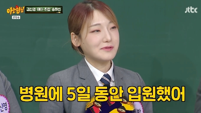 JTBC‘아는형님’캡처JTBC‘아는형님’캡처[뉴스엔서유나기자]먹방크리에이터히밥이병원입원경험을공개했다.2월28일방송된JTBC예능'아는형님'(이하'아형')519회에서는김신영,테이,송하빈,히밥이형님학교로전학을왔다.이날히밥은먹고속이부대낀적있냐는질문에"난딱한번병원에입원한적있다"고답했다.히밥은"군대인스턴트음식특집이었다.크림우동,라면,뽀글이해서30개정도먹었다"며"소화가너무느리게돼안되더라.병원에5일동안입원했다.뭐라고하셨냐면배가나오잖나.'임신가능성은없냐'고하시더라"고밝혔다.한편히밥은이날언제배부르다는느낌이오냐는말엔"라면25개"라고답변했다.뉴스엔서유나stranger77@기사제보및보도자료[email protected]ⓒ뉴스엔.무단전재&재배포금지Copyright©뉴스엔.무단전재및재배포금지.