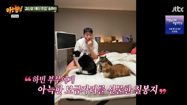 JTBC‘아는형님’캡처JTBC‘아는형님’캡처[뉴스엔서유나기자]건물주가됐다는소문은부인한코미디언송하빈이반려묘덕에신혼집을좋은데로구한사실은인정했다.2월28일방송된JTBC예능'아는형님'(이하'아형')519회에서는김신영,테이,송하빈,히밥이형님학교로전학을왔다.이날송하빈은본인의별명이'고팔남'(고양이팔아먹는남자)이라며3마리의고양이가'효묘'라고자랑했다.첫째고양이춘봉이는얼굴만걸리면조회수가100만이고,둘째고양이첨지는노래를부르는장기를보유중이며,셋째고양이칠복이는광고를책임지고있다고.송하빈은고양이들과만난인연을묻자"춘봉이,첨지는내와이프가데리고온애들이다.정말친구집에서곧죽어갈뻔한애들을와이프가구해살려줬다.이건보은이다.살려준걸갚으려고조회수올려주고구독자를올려준다"며"고양이3마리가우리신혼집을좋은데로(마련해줬다)"고자랑했다.송하빈은수익이만만치않을거같다며"건물보러다닌다던데"라고몰아가는형님들에건물은절대아니라고부정했다."집도고양이명의"라고너스레떤송하빈은"난괜찮은데우리고양이들이한강쪽을바라보더라.계속한강을바라보길래애들을위해서내가더열심히벌어서'한강을가줘야겠다'했다.아직은못갔다"고밝혔다.한편송하빈은1993년생으로만32세다.인천대학교체육학부출신이다.2024년12월크리에이터박지연과결혼했다.구독자약159만명의채널'언더월드'를통해반려묘춘봉,첨지,칠복과의일상을공개하며큰사랑을받고있다.뉴스엔서유나stranger77@기사제보및보도자료[email protected]ⓒ뉴스엔.무단전재&재배포금지Copyright©뉴스엔.무단전재및재배포금지.