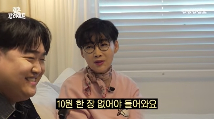 ‘안녕한샘요’채널캡처‘안녕한샘요’채널캡처[뉴스엔김명미기자]최양락이팽현숙에게용돈100만원을받는다고밝혔다.2월27일'안녕한샘요'채널에는'결혼장려캠프최양락&팽현숙부부편'제목의영상이업로드됐다.이날김규원은팽현숙에게"38년차부부인데경제권관리는어떻게하냐"고물었고,팽현숙은"지금이아니라,처음부터끝까지제가했다"고밝혔다.이어최양락은"용돈받고산다.100만원"이라고덧붙였고,팽현숙은"돈더많이주면안들어온다"고밝혀폭소를자아내다.또팽현숙은"10원한장없어야들어온다.돈이있으면부담스럽단다.탈탈털어야지"라고덧붙였다.뉴스엔김명미mms2@기사제보및보도자료[email protected]ⓒ뉴스엔.무단전재&재배포금지Copyright©뉴스엔.무단전재및재배포금지.
