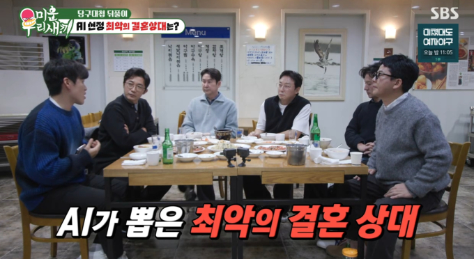 '미운우리새끼'최악의결혼상대1위&낙지볶음맛집(미우새)SBS예능‘미운우리새끼’(미우새)에서펼쳐진세기의당구대결이후이어진뒤풀이자리에서MC신동엽이AI가선정한‘최악의결혼상대’1위에오르는굴욕을맛봤다.4일방송된‘미우새’에서는신동엽과탁재훈의자존심을건당구빅매치와매콤한낙지볶음먹방이어우러진유쾌한회식현장이공개됐다.‘미운우리새끼’(미우새)치열했던당구경기가끝난후,신동엽과탁재훈을비롯한안재욱,정준호,김준호등멤버들은허기진배를채우기위해인근의유명낙지볶음전문점으로이동했다.이곳은매콤하면서도중독성강한양념과탱글탱글한낙지의식감이일품인맛집으로,멤버들은땀을흘리며낙지볶음을폭풍흡입해시청자들의침샘을자극했다.맛있는음식과함께술잔이오가며분위기가무르익자멤버들의입담도한층과감해졌다.안재욱의갑작스러운정관수술고백부터정준호의신혼생활조언까지,어디서도들을수없는날것그대로의토크가쏟아져나왔다.‘미운우리새끼’(미우새)뒤풀이의하이라이트는최첨단AI에게‘이들중최악의결혼상대는누구인가’를묻는시간이었다.멤버들은각자의장점을어필하며AI의선택을피하려애썼지만,결과는충격적이었다.AI는평소‘국민MC’이자애처가이미지를가진신동엽을최악의남편감1위로지목했다.결과를확인한신동엽은억울함을토로해현장을웃음바다로만들었다.반면탁재훈과김준호등다른멤버들은신동엽의굴욕을고소해하며짓궂은놀림을멈추지않았다.Copyright©bnt뉴스.무단전재,재배포및AI데이터활용금지