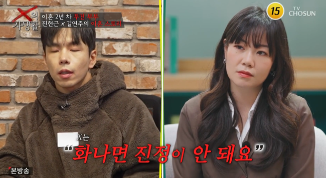 'X의사생활'방송방송시청후작성된리뷰기사입니다.[OSEN=최지연기자]'투견부부'진현근-길연주부부가사생활을공개했다.7일방송된TVCHOSUN이혼부부들의입장정리리얼리티'X의사생활'4회에는앞서'이혼숙려캠프'에출연했던'투견부부'진현근-길연주의사생활이그려져눈길을끌었다.이날진현근은길연주와처음만났던순간부터결혼그리고이혼을결심했던계기들을설명했다.진현근은지난2019년에'소개팅어플'로길연주를만났다면서"어플속사진을보고연락을하게됐다.제피부가까만편이다보니까하얗고눈이큰외모가마음에들었다"고고백했다.그는"X가살던동네에서아내를만났는데수다스럽고밝았다.당시에는예의가바른사람이었다.그렇게첫만남에4차까지갔다"고회상하며처음부터분위기가좋았다고회상했다.'X의사생활'방송진현근은이어"연애초반에아이가생겼다.이친구라면'결혼해도괜찮겠다'는생각이들었다"며결혼을결심했다고알렸다.하지만전처의결벽증,잦은음주,그리고폭력성때문에이혼을결심했다고.진현근은"싸울때마다경찰이왔다"면서두껍게쌓인신고서를경악하게만들었다.길연주는"제목소리가커서그렇다"고인정해김구라로부터"잘헤어졌다"는말을들었다.진현근은"협의이혼을얘기하던중에'이혼숙려캠프'섭외연락이왔다.나는처음에안나간다고했는데길연주가잘살아보기위해나가보자고말했다"고밝혔다.그런데"하지만나중에나를대국민앞에망신주기위해방송에출연했던것이라고하더라.배신감이느껴졌다.그런데출연후에욕은자기가다먹지않았냐.방송출연으로셀럽도되고싶었던것같은데오히려내SNS팔로우수가길연주의2배가됐다"고말해씁쓸한웃음을안겼다./[email protected][사진]'X의사생활'방송Copyright©OSEN.무단전재및재배포금지.