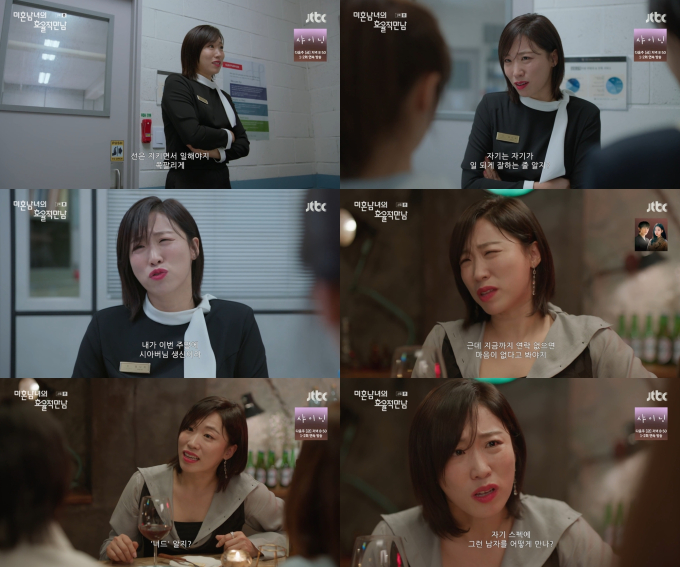 ‘미혼남녀’이미도,밉상력폭발(제공:JTBC)배우이미도가특유의현실밀착형연기로주말안방극장을사로잡았다.이미도는지난2월28일~3월1일방송된JTBC토일드라마‘미혼남녀의효율적만남’에서더힐스호텔구매팀책임인'정나리'역으로분했다.극중정나리는남편과는알콩달콩지내는딩크족으로,사생활을방패삼아후배들에게교묘하게일을떠넘기는인물이다.특히,정나리는이의영(한지민분)의회사생활전반에태클을거는전담저격수로활약하며웃음과긴장을동시에자아냈다.고된지방출장을피하기위해“시아버님생신”이라고둘러댔다가“아주버님생신”이라고황급히말을바꾸는장면은정나리의뻔뻔한면모를단적으로보여준대목이다.여기에정나리특유의얄미운말투와새침한걸음걸이는상황에몰입감을더했다.2회에서는정나리의‘밉상력’이한층업그레이드됐다.소개팅애프터연락을기다리는이의영에게“지금까지연락없으면마음없다고봐야지”라며은근히속을긁는가하면,급기야직접소개팅을주선하며“자기스펙에그런남자어떻게만나”라며거침없는팩트폭격을날렸다.이후정나리는“옷이나머리는신경쓰고갔어?”라고쉴틈없이훈수를두며극강의‘오지라퍼’로활약했다.이처럼이미도는‘미혼남녀의효율적만남’에서한지민과마치창과방패같은케미를이루며극의재미를견인하고있다.이미도만의리듬감있는대사처리와능청스러운표정연기로캐릭터에입체감을불어넣었다.덕분에이미도는얄밉지만자꾸눈길이가는,이른바‘볼매’캐릭터를완성하며앞으로의활약을기대케했다.한편,이미도표하이퍼리얼리즘연기를만나볼수있는JTBC‘미혼남녀의효율적만남’은매주토요일밤10시40분,일요일밤10시30분방송된다.이다미기자bnt뉴스연예팀기사제보[email protected]©bnt뉴스.무단전재,재배포및AI데이터활용금지