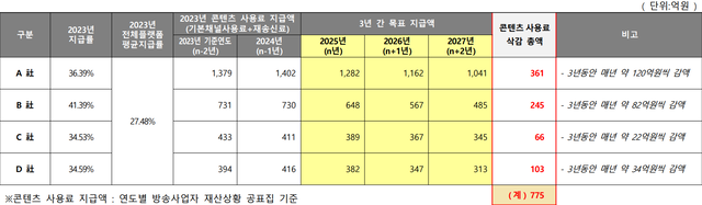 PP“일방삭감…전면철회해야”SO“시장변화속기준마련불가피”MSO보정옵션적용시뮬레이션예시.(2025년부터콘텐츠사용료지급액을삭감하는것으로가정해산출)PP업계제공지난해한국케이블TV방송협회가마련한콘텐츠사용대가산정기준을둘러싸고방송채널사용사업자(PP)업계와케이블TV사업자(SO)간갈등이커지고있다.PP업계는해당기준이콘텐츠가치를훼손하고일방적인사용료삭감을초래한다며전면철회를요구하고있는반면,SO측은급격한시장환경변화속에서공정하고지속가능한기준마련이불가피하다는입장이다.한국방송채널진흥협회와한국방송채널사용사업자협회,PP협의회는2일공동성명을내고케이블TV사업자들이추진중인‘콘텐츠사용대가산정기준’강행을즉각중단할것을촉구했다.PP업계가성명서를낸배경에는최근SO사업자전반으로콘텐츠사용료감액움직임이확산되고있다는위기감이작용한것으로보인다.LG헬로비전과딜라이브등일부사업자가대가산정기준적용을공식화한데이어지난해연말을기점으로다수의SO사업자들이콘텐츠사용료감액방침을PP사업자에통보했다.LG헬로비전,HCN,딜라이브등3개복수종합유선방송사업자(MSO)와8개SO사등사실상SK브로드밴드와아름방송을제외한나머지SO사업자들이움직임에가담하면서업계전반으로감액기조가확산될조짐을보이자PP업계가공동대응에나선것으로해석된다.PP업계는성명서를통해이번대가산정기준이수립과정에서절차적정당성과형평성을모두상실했다고주장했다.PP업계측은“초안공개시점이후대가산정기준의문제점과부당성을지적하며일관되게반대의사를밝혀왔음에도SO업계가협의없이지난해4월일방적으로대가산정기준을확정했다”며“SO사업자들의압박에저항하기어려운PP에게만기준이적용돼콘텐츠사용대가가일방적으로삭감되는결과를초래할것”이라고비판했다.특히지상파재송신료에는동일한기준이적용되기어려운현실을들어결과적으로PP사업자들만역차별을받게될것이라는우려도전했다.PP업계는최근5년간(2020~2024년)콘텐츠제작비가연평균6.9%상승한반면광고매출은연평균3.8%감소해이미경영부담이극심한상황이라고설명했다.이런상황에서주요MSO들이대가산정기준을적용하게되면향후3년간약775억원규모의콘텐츠사용료감소가발생할수있다는것이다.PP업계측은“SO업계가수신료매출감소와경영악화의책임을콘텐츠사업자에떠넘겨서는안된다”며“비용절감이아닌유료방송시장확대와콘텐츠경쟁력강화를위한방안을모색해야한다”고강조했다.이에대해SO업계는PP측주장이사실과다르거나과도한해석이라고맞섰다.SO업계측은“주요재원인수신료와홈쇼핑송출수수료는감소하는반면콘텐츠비용은지속적으로늘어나현재수신료매출대비프로그램사용료지급비율이90%를넘어서는어려운상황”이라고설명했다.이어“그간여러차례의의견수렴과정과전문가검토를기반으로한설명회와세미나등을통해다양한의견을청취해왔다”며“합리적인대안에대해서는가능한범위내에서반영하기위해노력해왔다는점에서‘협의가없었다’는주장에는동의하기어렵다”고말했다.SO측은이번대가산정기준이콘텐츠비용의일괄삭감이아닌매출증감과연동해프로그램사용료총액을관리하고객관적인기준에따라PP별사용료를배분하기위한장치라고강조했다.특히총액이줄어들더라도채널별성과에따라사용료가인상될수있는구조로,성과대비사용료를받지못하던중소콘텐츠사에는오히려긍정적으로작용할수있다고덧붙였다.업계안팎에서는이번갈등의배경으로온라인동영상서비스(OTT)확산등환경변화에따른유료방송시장전반의구조적문제점을꼽고있다.넷플릭스등OTT이용증가로케이블TV가입자수와수신료매출이지속적으로감소하고있는데다PP역시광고시장위축과플랫폼경쟁심화로수익구조가흔들리고있기때문이다.일각에서는유료방송시장지속가능성을위해정부차원의중재와제도적정비가필요하다는목소리도나온다.이혜선기자[email protected]©디지털타임스.무단전재및재배포금지.