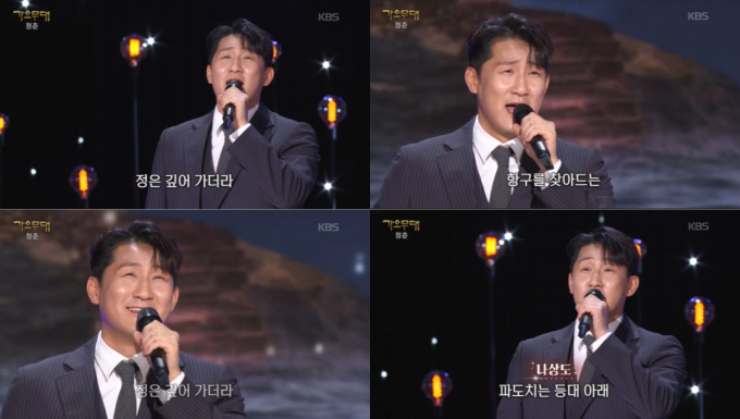 ‘가요무대’나상도,청춘등대(사진=KBS)가수나상도가‘청춘등대’로시청자들에게진한감동을선사했다.나상도는지난2일밤방송된KBS1TV‘가요무대’1937회‘청춘’편에출연했다.수트를입고등장한그는성숙하고단정한분위기로객석의시선을단숨에사로잡았다.이날나상도는손인호의명곡‘청춘등대’를선곡해무대를꾸몄다.부드러운목소리로곡을풀어내며아련한추억을소환했으며,안정적인가창력과매력적인저음으로시청자들의귀를사로잡았다.이에객석에서는뜨거운박수와환호가이어졌다.나상도는2017년싱글‘벌떡일어나’로데뷔한이후TV조선‘미스터트롯2’에서최종4위를기록하며이름을알렸다.‘콕콕콕’,‘어무니’등다채로운매력의트롯곡을선보였으며,‘중증건강센터’,‘트롯올스타전금요일밤에’등다양한프로그램출연을비롯,BTN라디오‘쾌남열전’DJ로도활약하며활발한활동을이어가고있다.서정민기자bnt뉴스연예팀기사제보[email protected]·Copyright©bnt뉴스.무단전재,재배포및AI데이터활용금지
