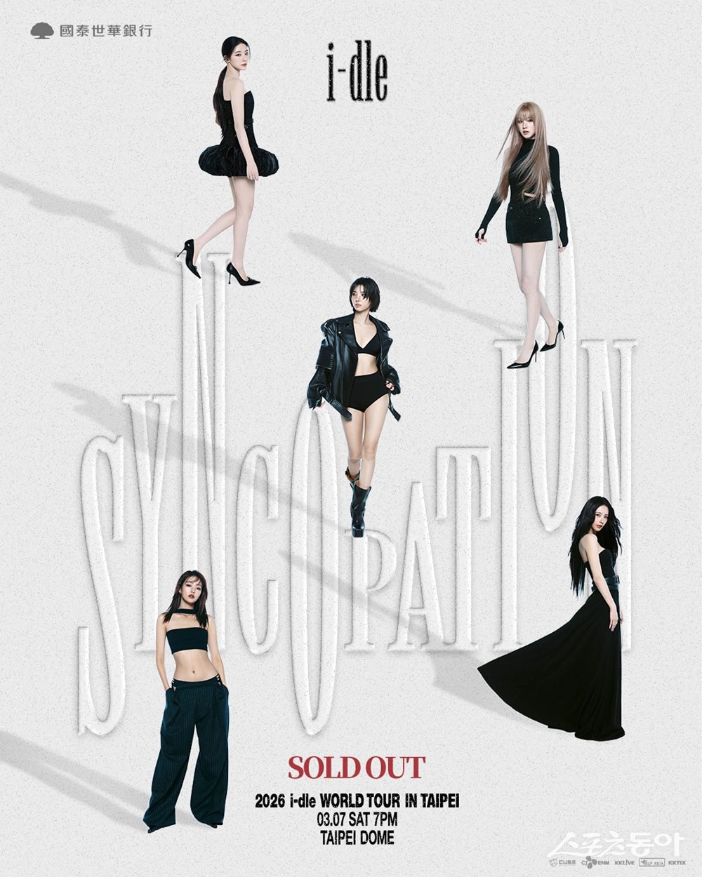 [스포츠동아이정연기자]걸그룹아이들이K팝걸그룹최초로타이베이돔단독공연을성사시키며전석매진으로티켓파워를증명했다.3월7일열리는‘2026i-dleWORLDTOUR[Syncopation]’타이베이공연은2월1일일반예매오픈과동시에전좌석이매진됐다.타이베이돔에서열리는K팝걸그룹최초단독콘서트라는점에서아이들의글로벌위상이다시한번확인됐다.아이들은2024년월드투어‘i-DOL’당시타이베이아레나3회공연을매진시킨데이어,이번타이베이돔까지완판을기록했다.타이베이에서만4회연속매진이라는진기록을세운셈이다.1년5개월만에다시찾는타이베이에서더커진규모와강렬한퍼포먼스로현지팬들과만날예정이다.이번투어타이틀‘Syncopation’은약한박자에강세를주어리듬의흐름에변화와긴장감을만드는기법을뜻한다.아이들은특유의자유롭고예측불가능한무대로‘Syncopation’의의미를무대위에서구현할전망이다.투어버전으로편곡된히트곡부터새로운무대까지예고돼기대를높인다.‘2026i-dleWORLDTOUR[Syncopation]’은2월21·22일서울KSPODOME을시작으로타이베이,방콕,멜버른,시드니,싱가포르,요코하마,홍콩등아시아와오세아니아주요도시대형공연장에서이어진다.한편아이들은2월1일밤‘Mono(Feat.skaiwater)’메가크루퍼포먼스비디오를기습공개하며화제를모았다.모던한데님콘셉트와뮤직비디오급영상미로주목받은해당영상은공개직후러시아,캐나다,영국,독일등다양한국가의유튜브트렌딩을장식하며‘Mono(Feat.skaiwater)’의흥행열기를이어가고있다.이정연기자[email protected]©스포츠동아.무단전재및재배포금지.
