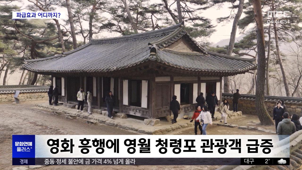 [뉴스투데이]문화연예플러스입니다.천만관객돌파를코앞에둔영화왕과사는남자의흥행으로작품의주요배경이자단종의숨결이깃든강원영월군을찾는관광객이급증했는데요.식약처까지인근지역내먹거리안전강화에나섰습니다."이곳을유배지로지정한다.감당할수있겠느냐?누가오든말이다."요즘강원도영월의주요관광지는긴대기줄이생길정도로북새통을이루고있는데요.특히단종이유배생활을했던청령포에는2월한달동안3만8천여명이방문해관광객이전년동기대비8배증가했고요.같은기간단종의무덤인장릉을찾은인파도9배나늘었습니다.영화흥행덕에관광객이급증함에따라식약처는오늘부터열흘동안영월군청과함께관광지주변음식점1백여곳에대한사전위생관리에나서는데요.식약처는이들업체를상대로위생점검을한뒤식품안심업소로지정하고바가지요금으로인한소비자피해를막기위해가격표시준수여부도살핍니다.MBC뉴스는24시간여러분의제보를기다립니다.▷전화02-784-4000▷이메일[email protected]▷카카오톡@mbc제보장유진리포터기사원문-https://imnews.imbc.com/replay/2026/nwtoday/article/6804703_37012.htmlCopyright©MBC&iMBC무단전재,재배포및이용(AI학습포함)금지