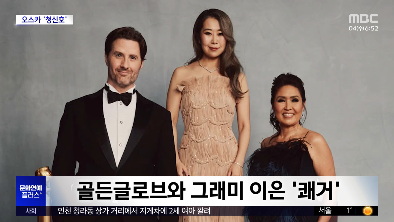 [뉴스투데이]전세계시청자를사로잡은애니메이션영화'케이팝데몬헌터스'가골든글로브와그래미에이어미국프로듀서협회상을받았는데요.이번수상으로이달열리는아카데미수상가능성에도청신호가켜졌습니다.현지시간2일미국프로듀서협회측에따르면37회시상식에서'케데헌'제작자'미셸웡'이최우수극장용애니메이션영화프로듀서상을수상했습니다.넷플릭스역대최고흥행작인'케데헌'은지난1월골든글로브시상식에서애니메이션상과주제가상을,지난달그래미시상식에선K팝장르로는처음으로수상의영예를안았는데요.미국프로듀서협회상시상식은최고권위영화행사인아카데미수상자를미리짐작해보는자리로평가받는만큼이번수상으로오는15일열리는제97회아카데미시상식에서'케데헌'의수상여부에기대가커지고있습니다.'케데헌'은장편애니메이션부문후보와'골든'으로주제가상후보에도올라있습니다.MBC뉴스는24시간여러분의제보를기다립니다.▷전화02-784-4000▷이메일[email protected]▷카카오톡@mbc제보장유진리포터기사원문-https://imnews.imbc.com/replay/2026/nwtoday/article/6804705_37012.htmlCopyright©MBC&iMBC무단전재,재배포및이용(AI학습포함)금지