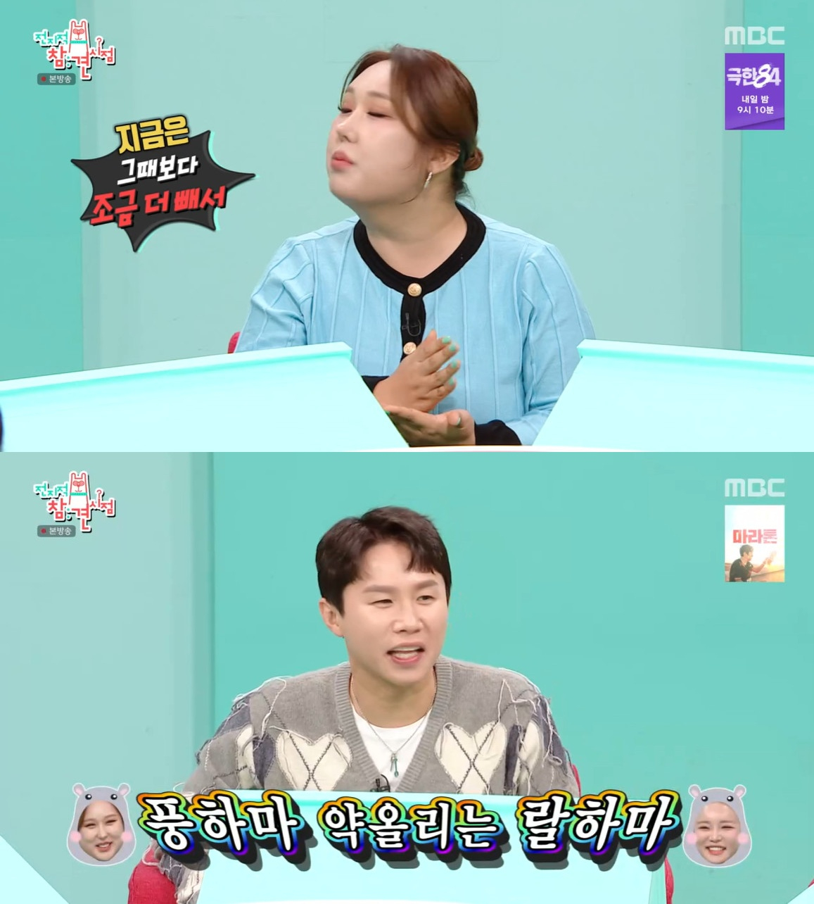 [스타뉴스|안윤지기자]/사진=MBC'전지적참견시점'방송캡처'전참시'방송인풍자가25kg를감량했다고밝혔다.6일방송된MBC'전지적참견시점'(이하'전참시')에는마이큐와풍자,랄랄이게스트로출연했다.풍자는다이어트성공한모습으로'전참시'에나타났다.그는"앞전에22kg를뺐고지금은총25kg을뺀상태"라며"한참제철일때는상의140을입었었다.8XL을입었는데지금은XL다"라고밝혔다.랄랄은풍자를보고"하마가빠진거다"라고하자,풍자는"난얘가이런말하는것도이상하다"라며황당해했다.한편'전참시'는매주토요일오후11시10분에방송된다.안윤지기자[email protected]©스타뉴스&starnewskorea.com,무단전재및재배포금지
