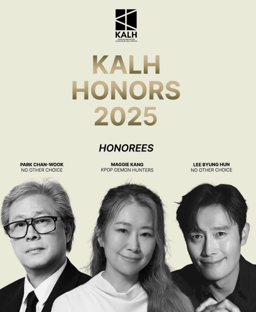[Dispatch=이명주기자]박찬욱감독과매기강감독,배우이병헌이할리우드한국계영화인들의단체시상식에서수상했다.할리우드한국계미국인영화인단체'코리안아메리칸리더스인할리우드'(KALH)는지난8일(한국시간)로스앤젤레스에서첫'KALH아너스'행사를열었다.KALH는박감독과강감독,이병헌을초대수상자로선정했다.킴버림KALH창립자는"한국스토리텔링의다양성을보여줬다"고선정이유를설명했다.박감독이영화'어쩔수가없다'로비저너리감독상을받았다."두려움없는스토리텔링과장르를초월한비전으로글로벌영화제작업계를재편했다"고봤다.매기강감독은넷플릭스영화'케이팝데몬헌터스'로선구자상을수상했다.KALH측은"새로운세대에게다가올미래에대한영감을줬다"고추켜세웠다.이병헌은남우주연상트로피를받았다."대담한선택과잊지못할연기,국경을초월한영향력을인정한다"며"그의공헌을기릴수있어기쁘다"고전했다.KALH는영화·TV·음악등할리우드엔터테인먼트업계전반의리더들이모여한국계창작자들의글로벌활동을지원하는단체다.지난2020년설립됐다.한편이들은제83회골든글로브후보에도노미네이트됐다.내년1월11일수상여부가공개된다.<사진출처=KALHSNS캡처>Copyright©디스패치.무단전재및재배포금지.