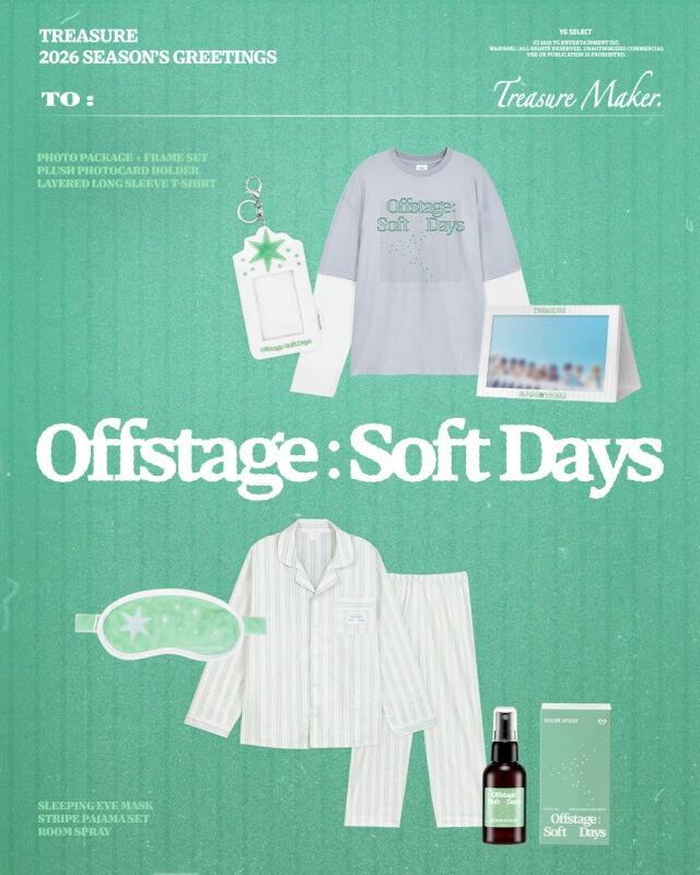 트레저/YGPLUS[마이데일리=이승길기자]그룹트레저(TREASURE)가2026년시즌그리팅MD로팬들에게특별한연말을선물한다.YG플러스(YGPLUS)는트레저(TREASURE)의2026년시즌그리팅MD’Offstage:SoftDays’예약판매가11일오전11시부터시작된다고밝혔다.이번트레저의2026년시즌그리팅MD는포근하고여유로운겨울감성을담아냈다.콘셉트에맞춰하루의시작과마무리에활용하기좋은수면안대·잠옷등라이프스타일제품군이포함됐다.특히'2025-26TREASURETOUR[PULSEON]INSEOUL'을앞두고진행한MD서베이‘MAKEYOURMERCH’에서팬들의큰지지를얻은‘룸스프레이’가이번시즌그리팅제품으로출시된다.팬의견이직접반영된MD라는점에서의미가크며,트레저의따뜻한감성을향으로구현해소장가치를높였다.또한오프라인매장에서만만날수있는단독상품도출시된다.theSameE인사·명동점에서는단독구성제품인‘TREASUREL-HOLDER+PHOTOCARD(멤버옵션)’을한정판매한다.온오프라인구매특전으로는구매금액3만원당미공개셀피포토카드10종중1종이랜덤으로증정된다.한편‘2025-26TREASURETOUR[PULSEON]’을진행중인트레저는올연말국내외를넘나들며맹활약을이어갈예정이다.Copyright©마이데일리.무단전재및재배포금지.