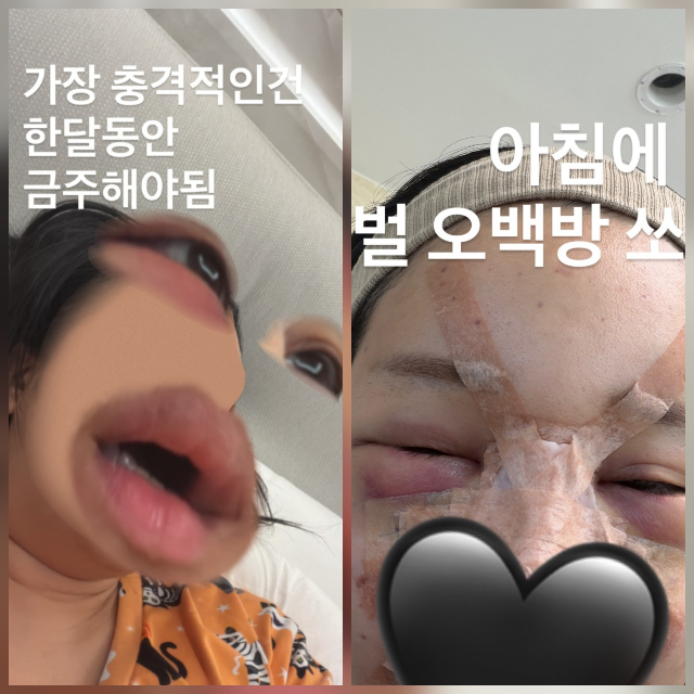 “벌500방맞은줄”…랄랄이눈밑지방재배치와코수술이후의얼굴을공개하며솔직한심경을전했다.유튜버겸방송인랄랄은17일자신의SNS를통해수술직후근황을알렸다.그는“눈밑지방재배치랑코를했다”며“눈밑지방재배치는멍도안들고안붓는다그랬는데피멍이들어서눈알이다터진줄알았다”고털어놨다.함께공개된사진에는코에거즈와테이프를덧댄채퉁퉁부은얼굴로카메라를바라보는랄랄의모습이담겼다.눈가는보랏빛멍이번져있었고,붓기가내려앉지않은상태였다.그는기상직후모습을공개하며“아침에벌500방쏘인줄”이라고덧붙였다.랄랄이눈밑지방재배치와코수술이후의얼굴을공개하며솔직한심경을전했다.사진=랄랄SNS가장당황스러웠던점으로는금주를꼽았다.랄랄은“한달동안금주해야한다고해서그게제일충격”이라며웃픈심정을전했다.앞서랄랄은체중73kg,체지방률40%라고밝히며다이어트를선언한바있다.식단조절과금주를병행하며변화를예고했던그는얼굴변화를체감하는과정에서코수술까지결심했다고전했다.랄랄은지난해11살연상의비연예인과결혼해딸을출산했다.최근에는다이어트와외모관리과정을솔직하게공유하며팬들과활발히소통하고있다.[김승혜MK스포츠기자][ⓒMK스포츠,무단전재및재배포금지]Copyright©MK스포츠.무단전재및재배포금지.