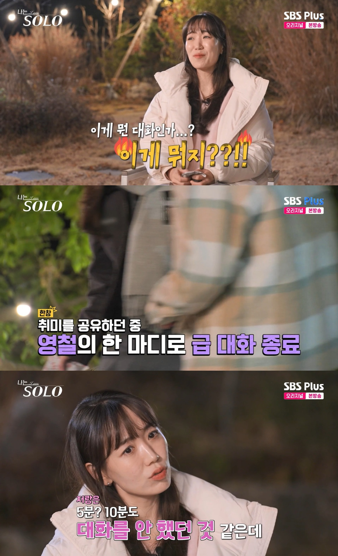 [스타뉴스|안윤지기자]/사진='나솔'30기옥순이영철의태도에의아함을표했다.18일방송된SBS플러스,ENA예능'나는솔로'에서는30기데이트가진행됐다.옥순,순자,영철이2대1데이트를마치고1대1로대화를나눴다.옥순과영철은대화하던중영철이"춥다"하고들어갔다.옥순은"'겨울왕국좋아'이러다가춥다고들어갔다.1대1데이트에영양가는없었다.이게뭔대화인가싶다"라며"나는5분?10분도안했는데둘이대화를꽤오래했다.점점더워졌나?영철이순자를더좋아할수있겠다싶었다"라고털어놨다.순자는영철에게"내가선택할수있어서좋았다.전반적인대화가편하다고느꼈다"라고하자,영철은"남자가선택했으면솔직히내가누구선택했을거같냐.순자였다.고맙다는생각이들었다.여성분이남자한테대화를거는게몇배더힘들다고생각한다"라고속내를밝혔다.한편'나는솔로'는매주수요일오후10시30분에방송된다.안윤지기자[email protected]©스타뉴스&starnewskorea.com,무단전재및재배포금지