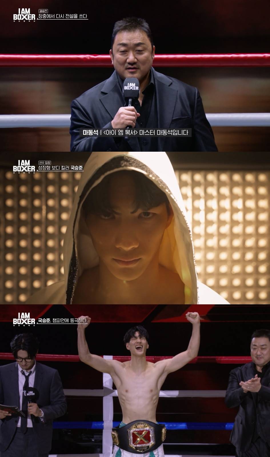‘아이엠복서’마스터마동석,최종우승자국승준이마지막소감을전했다.iMBC연예뉴스사진tvN‘아이엠복서’(연출이원웅,작가강숙경)가지난23일최후의1인을결정지은결승전을끝으로종영한가운데프로그램의중심축으로활약한마스터마동석의종영소감과최종우승을거머쥔‘보디킬러’국승준의우승소감을공개했다.먼저프로그램을직접설계한마동석은“첫회기획회의부터마지막벨소리가울릴때까지‘아이엠복서’는정말뜨겁고의미있는여정이었다”고말했다.또한“방송을보시고주변의많은분들이복싱장에가는모습을보면감사한마음뿐이다.출전한선수들도이런기회를만들어주셔서감사하다는메시지를많이보내줘저역시고마움을많이느꼈다”며이원웅PD와강숙경작가,스태프들,김종국,덱스에게고마운마음을밝혔다.특히마동석은“복싱장관장으로서,코치로서,복싱을사랑하는사람으로서‘아이엠복서’를통해복싱은단순히치고받고싸우는것이아닌예술적인스포츠라는것을다시한번확인했다”고.그는“이감사함을잊지않고세계무대에K-복싱을널리알리는데조금이나마힘을보태고싶다”며“조금더좋은모습으로,더재미있는복싱을접하실수있도록하겠다.예능뿐만아니라정식시합이나스파링대회등도준비하고있으니많은관심부탁드린다”고계속될‘복친자(복싱에미친자)’의행보를예고했다.국승준은“복싱을사랑하는복싱선수로서이렇게뜨거운복싱프로그램을만들어주신마동석마스터님과제작진분들께감사하다는말씀을먼저드리고싶다.결승상대였던채현이형에게도정말감사하고,미안하고,고생했다는말을전하고싶다”고이야기했다.또한이채현의실력을치켜세운그는“이번결승전에서저와채현이형둘다혼신의힘을다해싸웠다”며부상을무릅쓰고좋은경기를만들어준이채현과의결승전소회를털어놨다.그런가하면국승준은‘아이엠복서’에참가한수많은강자앞에서스스로에대한믿음이흔들리기도했던터.“그럴때마다저를믿고도와주신화순군청팀,중학교은사님,소중한가족과지인들덕분에힘든순간과역경을잘이겨낼수있었다.감사하다”며“챔피언이라는자리는여러분과같이올라왔다고생각한다”고공을돌렸다.더불어“‘아이엠복서’는끝이났지만저의복싱은계속될것이다.이경험과사랑을잊지않고더욱정진하며다시저의자리에서묵묵히저의복싱을해나가겠다”는단단한포부를밝혀복서국승준의행보에관심이모아진다.한편,블록버스터복싱서바이벌tvN‘아이엠복서’는디지털영상누적조회수5.2억뷰를돌파했다.시즌제가아닌tvN신규예능중영상조회수역대1위기록으로K-복싱의부활을이끌었다.90인의복서들과시작해1대1결정전,6대6펀치레이스,케이지링과태그링그리고아쿠아링으로구성된세개의링대결,삼파전을거쳐8강,4강,최종우승자1인이가려진결승까지신선한파이트와대진으로한번,생존을위해싸우는복서들의진정성넘치는승부로또한번시청자들의심장을요동치게만들며글로벌‘복친자’들을양성,길었던여정을의미있게마무리했다.iMBC연예뉴스사진다음은마동석,국승준소감전문-마동석종영소감첫회기획회의부터마지막벨소리가울릴때까지,‘아이엠복서’는정말뜨겁고의미있는여정이었습니다.프로나국가대표뿐만아니라자신과싸우고게으름과싸우며바쁜일상속에서시간을내어복싱장에가서운동하는모두가복서입니다.그런수많은복서를응원하기위해이예능을만들었습니다.‘아이엠복서’를보시고주변의많은분들이복싱장에가는모습을보면감사한마음뿐입니다.출전한선수들도이런기회를만들어주셔서감사하다는메시지를많이보내줘저역시고마움을많이느꼈습니다.이런보람을느낄수있도록함께해준이원웅PD와강숙경작가를비롯해카메라뒤의많은스태프들에게도감사합니다.함께울고웃었던김종국과덱스에게도고마움을전하고싶습니다.정말많은분이큰사랑과응원을보내주셨기에가능했던일입니다.복싱장관장으로서,코치로서,복싱을사랑하는사람으로서‘아이엠복서’를통해복싱은단순히치고받고싸우는것이아닌예술적인스포츠라는것을다시한번확인했습니다.이감사함과고마움을잊지않고,세계무대에K-복싱을널리알리는데조금이나마힘을보태고싶습니다.‘아이엠복서’에이어조금더좋은모습으로,더재미있는복싱을접하실수있도록하겠습니다.예능뿐만아니라정식시합이나스파링대회등도준비하고있으니많은관심부탁드립니다.-국승준우승소감복싱을사랑하는복싱선수로서,이렇게뜨거운복싱프로그램을만들어주신마동석마스터님과‘아이엠복서’제작진분들께감사하다는말씀을먼저드리고싶습니다.결승상대였던채현이형에게도정말감사하고,미안하고,고생했다는말을전하고싶습니다.채현이형은제가감히라이벌이라는수식어를붙여도될까싶을정도로대한실력을가선수입니다.이번결승전에서저와채현이형둘다정말혼신의힘을다해싸웠습니다.두사람모두최선을다해결승전을준비했고,피와땀,눈물을모두쏟았습니다.관중분들과시청자분들께10라운드까지다못보여드린게아쉬울따름입니다.부상을무릅쓰고좋은경기를만들어준채현이형에게다시한번감사드립니다.‘아이엠복서’촬영을하면서수많은강자앞에