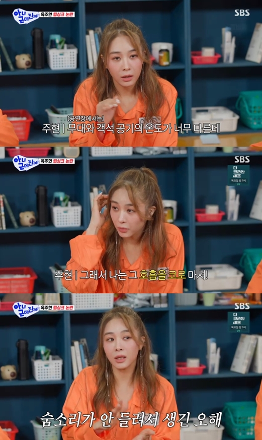 [스타뉴스|안윤지기자]/사진=SBS예능'아니근데진짜'방송캡처'아니근데진짜'뮤지컬배우옥주현이립싱크논란을언급했다.16일방송된SBS예능'아니근데진짜'에서는옥주현이게스트로출연했다.이상민은"노래를너무잘해서립싱크논란도있었다"라고말했다.옥주현은"맞다.일본유튜버가그랬다더라.공연장에가면무대와객석온도가너무다르다.관객석은한방향으로숨을쉬지않나.호흡을입으로가면목이완전히간다"라고설명했다.이어"호흡을코로마신다.언제마셨는지모르게한다.그글을보면숨소리가안들린다고한다.그게나만의방법이다"라고전했다.한편'아니근데진짜'는매주월요일오후10시10분에방송된다.안윤지기자[email protected]©스타뉴스&starnewskorea.com,무단전재및재배포금지