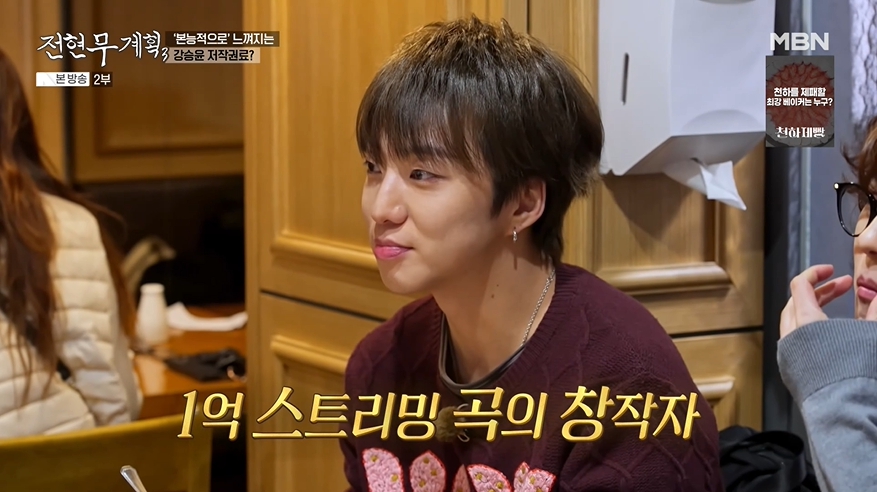 '전현무계획3'방송캡처(엑스포츠뉴스이창규기자)위너강승윤이저작권료수입을공개했다.6일방송된MBN'전현무계획3'에서는그룹위너김진우,강승윤이게스트로출연해경기도안양의맛집을찾아나서는모습이그려졌다.이날방송에서전현무는"아까먹친구힌트줄때승리의기운이있는그룹이라고소개했는데,남자아이돌최초로1억스트리밍을넘었다"고언급했다.'전현무계획3'방송캡처이에강승윤은"정말많이스트리밍된남자아이돌노래가대부분연간몇천만회정도가끝인데,'REALLYREALLY'(릴리릴리)는1억넘었다.국내음원사이트에서1억스트리밍을했다"고말했다.지난2017년발매된'REALLYREALLY'는발매39주만에남자아이돌최초로차트인을유지하면서1억스트리밍을달성한곡으로이름을올렸다.강승윤은'REALLYREALLY'의작사,작곡을모두자신이맡았다고했고,전현무는"저작권료어마어마하겠네"라고감탄했다.'전현무계획3'방송캡처그러자강승윤은"저작권이라는게가장인기가많은그순간에가장많은돈이들어오고,그다음부터인기가떨어지기시작하면그렇게많지않다"고설명했다.전현무와곽튜브가저작권료수입이얼마인지묻자강승윤은"크죠.큰데,억단위가들어온다"면서월수입이그정도라고언급했다.이에전현무는"효자곡이네"라고말했고,곽튜브는"그래서액세서리가많구나"라고농담했다.사진='전현무계획3'방송캡처이창규기자[email protected]©엑스포츠뉴스.무단전재및재배포금지.