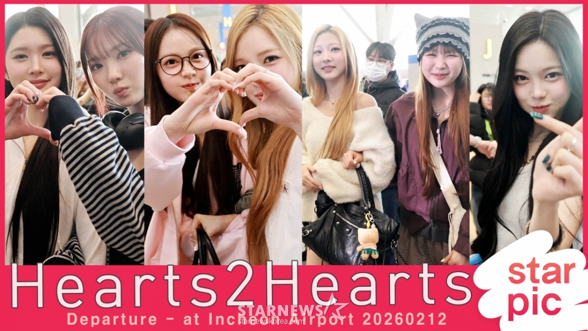 [스타뉴스|인천국제공항=임성균기자]하츠투하츠'예쁨이한가득!'[★영상]그룹하츠투하츠(Hearts2Hearts)카르멘,유하,스텔라,예온,에이나,지우,주은,이안이태국SMTOWN공연차12일오후인천국제공항을통해출국하고있다.2026.02.12인천국제공항=임성균기자[email protected]©스타뉴스&starnewskorea.com,무단전재및재배포금지
