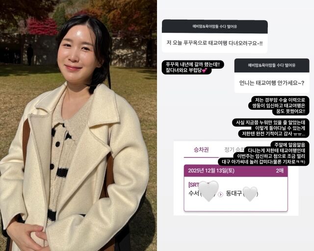 그룹크레용팝출신초아,초아가게재한사진/초아소셜미디어[마이데일리=강다윤기자]그룹크레용팝출신초아(35·허민진)가임신중자궁경부암수술이력으로인한고충을토로했다.초아는10일자신의계정을통해네티즌들과이야기를나누는시간을가졌다.이날한네티즌은"원래2월출산인데조산으로한달일찍출산하는데…잘출산할수있겠죠?벌써겁나요.저도아들맘이에요"라고걱정을털어놨다.이에초아는"그럼요!요즘의료시스템을믿고가봅시다!!엄마도아가건강할거예요.아들육아도같이파이팅해요!!"라고응원의메시지를전했다.그런가하면"저오늘푸꾸옥으로태교여행다녀오려고요!!"라는자랑에는"내년에갈까했는데잘다녀와요.부럽다"이라답했다.또다른네티즌이"언니는태교여행안가세요?"라고묻자"저는경부암수술이력으로쌍둥이임신하고태교여행은꿈도못꿨어요"라고말하기도했다.이어초아는"사실지금쯤누워만있을줄알았는데이렇게돌아다닐수있는게저한텐완전기적이고감사"라며"주말에알음알음다니는게저한테태교여행인데이번주는임신하고처음으로조금멀리대구아가씨네로놀러갑니다.물론기차로"라고말해눈길을끌었다.초아는2021년6세연상의사업가와결혼했다.이듬해산전검사에서자궁경부암진단을받았고,2023년암절제및가임력보존수술을진행했다.이후시험관시술을통해지난9월쌍둥이임신에성공했으며,내년3월출산을앞두고있다.Copyright©마이데일리.무단전재및재배포금지.