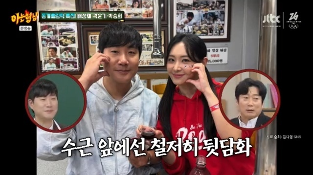 JTBC‘아는형님’캡처JTBC‘아는형님’캡처[뉴스엔서유나기자]방송인이수근이스포츠캐스터배성재의아내뒷담화를폭로했다.2월7일방송된JTBC예능'아는형님'(이하'아형')517회에서는2026동계올림픽특집을맞아배성재,곽윤기,박승희가형님학교로전학을왔다.'골때녀'에서약4년간배성재와호흡을맞추다하차한이수근은배성재의연애를알고있었냐는질문에"난성재반전이었다.나랑중계할때와이프욕엄청했다.'연습도않고신인아나운서가축구저따구로한다'고.우리겨울추울때였는데난그래도우리제수씨지금써야한다,실력없어도출전시켜야지했는데(배성재는)'실력없는데왜써야하냐'고하더라.보이는데에서지아내뭐라고하면서뒤에서꽁냥꽁냥한것"이라고폭로했다."뭐랄까목이메네"라며당황한모습을보인배성재는"한번중계하는데팍넘어지더라.중계를많이해보니까넘어지는거보면저사람이축구할수있구나없구가견적이나온다.넘어지는거보니안뛰는게좋겠다싶었던것"이라고해명했고김희철은"다른선수들은넘어지든말든상관없으니까"라고아내를걱정했을배성재의마음을짐작했다.이수근은당시두사람의연애는까맣게모르고"같이욕했다"며"제수씨죄송하다"고사과했다.이에김희철은"그래서날렸네"라며이수근이'골때녀'에서잘린이유가배성재때문이라고몰아가웃음을자아냈다.배성재는2005년KBS공채아나운서로입사한뒤2006년SBS로이직,다수의스포츠프로그램에서활약하다2021년퇴사했다.지난해5월SBS예능'골때리는그녀들'로인연을맺은김다영SBS전아나운서와약2년간의교제끝에14살차이를극복하고결혼했다.뉴스엔서유나stranger77@기사제보및보도자료[email protected]ⓒ뉴스엔.무단전재&재배포금지Copyright©뉴스엔.무단전재및재배포금지.