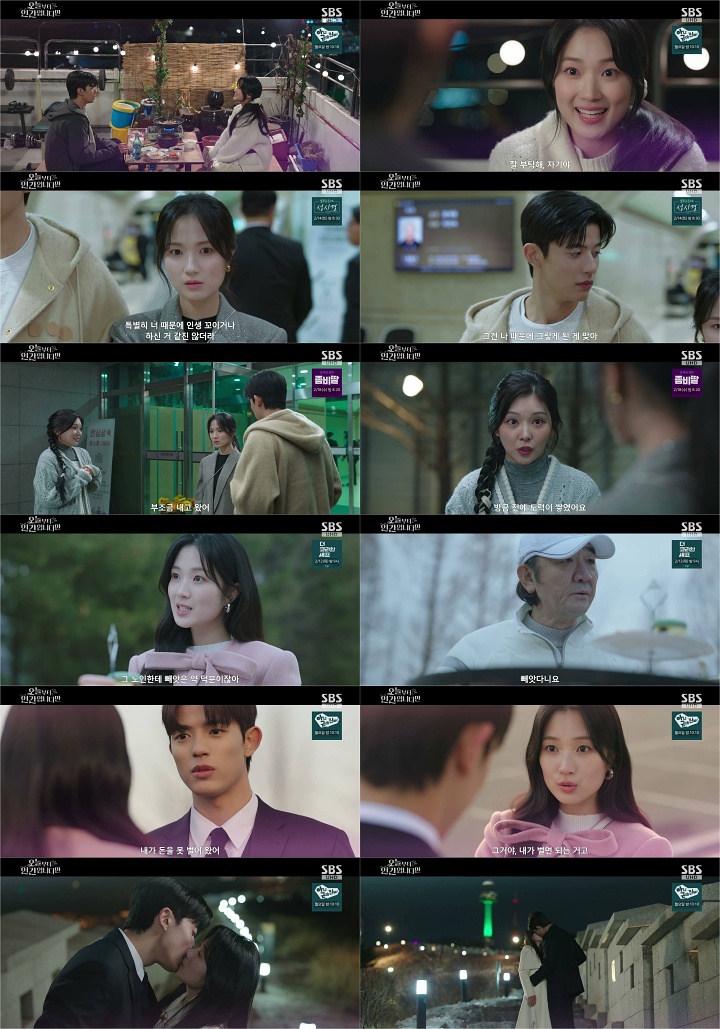 "기억을지우는건너에대한내마지막선물"iMBC연예뉴스사진'오늘부터인간입니다만'로몬이김혜윤에게입맞춤을했다.7일방송된SBS금토드라마'오늘부터인간입니다만'(극본박찬영·조아영,연출김정권,기획스튜디오S,제작빈지웍스·모그필름)8회에서은호(김혜윤분)와강시열(로몬분)은연애인듯연애아닌연애를시작했다.은호의진심이무엇이고자신의감정은무엇인지헷갈리던강시열은그에게입을맞추며시청자들의가슴을뛰게했다.사실은호의고백은고백보단통보에가까웠다.구미호시절취미를즐기던것처럼,"기왕인간된김에너랑연애나해볼까싶어"라며일방적인연애통보(?)를했다.강시열은당혹감에아무답도하지못했고,그날이후은호의플러팅은계속됐다.그런가운데다시찾은요양병원에서황동식(정동환분)의사망소식이들려왔다.은호는황동식의아들(오민석분)과의대화를통해서그에대한기억을떠올리며왠지모를죄책감과부채감을느꼈고,강시열은은호의부탁으로가진돈을모두부조하고장례식장을나섰다.그리고바로그때,팔미호(이시우분)가나타나도력이쌓였다는사실을알렸다.그말에은호는"나어쩐지좀알것같아.지금우리가해야하는일이뭔지"라면서,국내최대제약회사의최고대표자이자자신의아주오랜VIP고객김회장(김홍파분)을만나러향했다.과거김회장은은호의도력으로황동식이개발한신약의임상결과를미리알아내고,은호의도움으로그의마음을돌려신약을사들인것이었다.은호는김회장에게황동식이누려야할성공을대신누리고있음을강조하며,회사건물을부조로넘기라고협박에가까운지시를했다.은호는단순한선행이아니라,과거에저지른잘못을바로잡아야도력을쌓을수있을것이라고짐작했다.한편,이윤(최승윤분)은현우석(장동주분)에이어장도철(김태우분)을찾아갔다.병원응급실에서나오는장도철은죽을날을앞둔사람같았다.이윤은"그쪽이만나봤으면하는사람이있어서"라며,그와함께현우석(장동주분)의집으로향했다.이윤은은호가지운현우석의기억에중요한진실이감춰져있다고확신했다.이에이윤은장도철의특별한능력이필요했고,결국기억이되살아난현우석은은호가구미호에서인간이됐다는사실을밝혔다.이날방송에는은호와강시열의첫데이트도그려졌다."내가하고싶은건참신한게아니야.진부하고전형적인연애지"라던은호는강시열과남산데이트를했다.야경이한눈에보이는전망대에올라,자물쇠에소원을적어걸고,돈가스를대신썰어주기도하는,인간세상에서는너무도평범하지만이모든게처음인은호에겐더없이특별한데이트였다.강시열은은호의손을잡고걸으며,언젠가두사람이원래대로돌아가게됐을때자신의기억도모두지울것인지물었다.이에은호는다시평범하게살기위해선자신에대한기억은없어야한다며,"기억을지우는건너에대한내마지막선물"이라고답했다.그러자강시열은한층진지한눈빛과목소리로"만약에내가평범한거싫다고하면?네가네멋대로내기억을지우고,너만지금이순간을기억할거라고하면,나도이정도는내맘대로해봐도되는거아냐?"라고되물었다.이어강시열이은호에게입을맞추는엔딩은설렘지수를최고조로끌어올렸다.SBS금토드라마'오늘부터인간입니다만'은설연휴편성으로오는13일(금)~14일(토)양일결방되며,오는20일(금)밤9시50분에9회가방송된다.iMBC연예백아영|사진출처SBSCopyright©MBC연예.무단전재및재배포,AI학습금지.