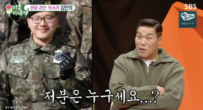 김민석,삼겹살곱창15인분먹어치우는남다른먹성공개(MHN김소영기자)그룹멜로망스의보컬김민석이감미로운목소리뒤에숨겨진'대식가'면모와함께충격적인과거사진을공개했다.8일방송된SBS예능'미운우리새끼'에스페셜MC로출연한김민석은"365일다이어트와전쟁중"이라며말문을열었다.특히그는과거'황제다이어트'의부작용을고백해현장을웃음바다로만들었다.김민석은"단백질만먹으면살이빠진다는말에고기만먹었는데,삼겹살10인분에곱창5인분씩먹으니전혀빠지지않더라"며"식당사장님이혼자먹는손님이기름통을비우는건처음봤다고할정도였다"고털어놨다.가장화제가된것은그의육군훈련소시절사진이었다.공개된사진속김민석은지금의날렵한턱선은온데간데없이통통하게살이오른모습으로등장해모두를경악케했다.당시몸무게가96kg였다는그는"저때가그나마조금빠진것"이라며"입대직전행복하게먹고활동하자는생각에몸무게가급격히불어난상태였다"고설명했다.이어김민석은입대당시겪었던굴욕적인일화도전했다.그는"조교가'26번훈련병김민석맞냐'고거듭확인하더니,다른사람까지불러'쟤가진짜멜로망스김민석이맞냐'고물어보더라"며"그런데확인하러온사람조차내얼굴을보더니'아닙니다'라고단호하게말하고돌아갔다"고밝혀폭소를유발했다.사진을본서장훈과신동엽은"아예다른사람이다","세상을다가진행복한표정"이라며놀라움을금치못했다.한편,김민석은현재뮤지컬'데스노트'에서열연을펼치며무대위독보적인카리스마를뽐내고있다.고무줄몸무게를극복하고'멜로장인'으로돌아온그의솔직담백한입담은안방극장에유쾌한에너지를전달했다.사진=SBS'미운우리새끼'Copyright©MHN.무단전재및재배포금지.