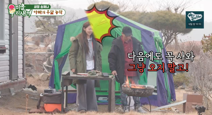 ‘미운우리새끼’(미우새)8일방송된SBS예능‘미운우리새끼’(미우새)에서는모델겸방송인송해나가아버지와함께주말농장을찾아힐링의시간을보내는모습이그려졌다.이날송해나의아버지는딸과의오붓한시간을위해비장의무기로무려30년된텐트를꺼내들어모두를놀라게했다.송해나는세월의흔적이가득한텐트의등장에경악하면서도,아버지의추억이담긴물건에흥미를보였다.‘미운우리새끼’(미우새)이어부녀는탁트인야외에서본격적인고기먹방을펼쳤다.송해나는아빠와고기를구워먹으며소탈하지만행복한시간을만끽했다.티격태격하면서도서로를챙기는‘찐친’같은부녀의케미스트리가시청자들에게흐뭇한웃음을선사했다.송해나와아버지의따뜻한주말농장나들이는안방극장에훈훈함을안겼다.Copyright©bnt뉴스.무단전재,재배포및AI데이터활용금지