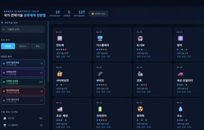 과기정통부혁신본부,'국가전략기술분류체계현황맵'공개박인규본부장이직접코딩…오류수정후대국민공개국가전략기술분류체계현황맵(https://msitosti.github.io/strategic-tech-map/)/사진=현황맵웹사이트갈무리"박인규과기혁신본부장님이90분만에바이브코딩으로뚝딱만들어공개했는데정말보기편하게잘구현된것같습니다.…차관급이직접바이브코딩으로정보제공웹페이지를뚝딱만드는대한민국정부!"(하정우대통령실AI미래기획수석)하수석이최근자신의SNS(소셜네트워크서비스)계정에서박인규과학기술정보통신부과학기술혁신본부장의공로를치하하며한웹페이지를소개했다.과기혁신본부가제공하는'국가전략기술분류체계현황맵'이다.하수석은"R&D(연구·개발)에참여하는연구자혹은기업대표가가장헷갈리는것중하나가비슷한이름으로여러부처가각각관리하는'전략기술'"이라고했다.이어"어떤건R&D지원,어떤건조세특례지원,어떤건보호대상기술로서수출통제를받는데,부처별전략분야가파편화돼있고목적이다르다보니상호연계가돼있지않았다"고짚었다.그러면서"과기정통부,재경부,산업부가함께국가전략기술분야관리방안을정리한것이(11일)과기관계장관회의에서안건으로통과됐다"며"이제각연구기관들은편리하게이주요전략분야현황을파악할수있을것"이라고했다.안건통과에따라앞으로는법령별(△국가전략기술육성법△조세특례제한법△국가첨단전략산업법△산업기술보호법)·부처별로운영해오던주요전략기술육성·보호체계를하나로묶어관리하게된다.과기혁신본부가이같은범부처기술관리체계고도화를맡는다.현재일부공개된현황맵에접속하면△반도체△디스플레이△바이오△로봇△조선·해양△원자력등국가전략기술19개의세부기술이무엇인지,각세부기술이어떤법령에의해관리되고있는지한눈에확인할수있다.이를테면'원자력'기술은대형원전기술,소형원자로기술,후행핵주기기술,방사선활용기술로구분된다.이중소형원자로기술은다시'경수형SMR(소형모듈원자로)'과'비경수형SMR','연구용원자로'로나뉜다.세부기술명을누르면각기술이전략기술육성법,조세특례제한법(신성장)등다양한법령중어디에해당하는지알수있다.━1개월걸렸을작업,90분만에바이브코딩으로뚝딱━이현황맵은차관급인박본부장이'바이브코딩'을이용해직접만들었다는점에서화제가됐다.바이브코딩은자연어프롬프트(명령어)를입력하면AI가자동으로코딩해주는방식이다.그는지난12일기자들과만나"작업에한시간반정도걸렸다"고밝혔다.박본부장은"예전같으면외주맡기고도1개월이상걸렸을것"이라며"직원들이몇달씩전략기술데이터를총망라해데이터베이스를만들어준덕분에(90분만에)웹사이트를만들수있었다"고덧붙였다.이어"할루시네이션(AI가가짜정보나틀린정보를만들어내는현상)으로인한오류를수정하는후작업을마치면조만간정식공개할수있을것"이라며"앞으로는혁신본부뿐아니라각정부부처가AI시대에맞춰모든정책과통계자료를대시보드형태로만들어모두에게공개하는시대가열리지않을까싶다"고했다.하정우AI미래기획수석이자신의페이스북계정에올린게시글/사진=하정우페이스북계정갈무리박건희기자[email protected]©머니투데이&mt.co.kr.무단전재및재배포,AI학습이용금지.