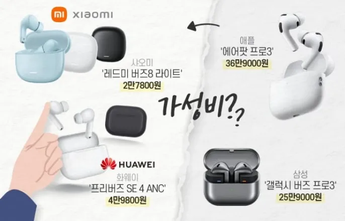 샤오미,2만7800원‘레드미버즈8라이트’출시화웨이,4만9800원‘프리버즈SE4ANC’출시“가성비높이고품질우려해소”그래픽=정서희샤오미,화웨이등중국업체들이‘가성비(가격대비성능)’를앞세운저가무선이어폰을국내에속속출시하고있다.20만원이넘는프리미엄제품을주력으로하는삼성전자와애플의아성을흔들수있을지업계의관심이쏠린다.28일업계에따르면화웨이는지난26일무선이어폰신제품‘프리버즈SE4ANC’를한국에출시했다.국내판매가격은4만9800원이다.당초6만원대로책정했던가격을국내출시과정에서한달간한시적으로낮췄다.샤오미도지난12일‘레드미버즈8라이트’를국내에내놓으며출고가를2만7800원으로책정했다.삼성전자‘갤럭시버즈프로3’(25만9000원)와비교하면약9분의1,애플‘에어팟프로3’(36만9000원)대비약13분의1수준이다.중국업체의존재감은점유율에서도확인된다.시장조사업체카날리스에따르면지난해글로벌무선이어폰시장점유율은애플23.3%,샤오미11.5%,삼성7.1%,화웨이6%순으로집계됐다.2022년4.4%에그쳤던샤오미는2024년부터삼성전자를추월했고,2022년집계에서3%미만으로분류됐던화웨이도빠르게몸집을키우고있다.애플역시2022년까지30%안팎을유지했지만3년만에20%대초반으로내려앉았다.업계안팎에서는중국의‘질주’가당분간더거세질것이라는관측이나온다.가격을낮추는데그치지않고완성도를끌어올리며‘중국산디스카운트’우려를걷어내고있다는평가가나온다.업계는40dB이상의노이즈캔슬링을갖춘기기를프리미엄제품군으로분류한다.2만원대샤오미제품은42dB,4만원대화웨이제품은50dB수준의노이즈캔슬링기능을탑재했다.샤오미제품에는듀얼마이크와인공지능(AI)기반소음억제(ENC)기술이,화웨이제품에는IP54등급의생활방수·방진기능이적용됐다.전자업계관계자는“경기침체와물가상승이겹친최근국면에서중국산가성비무선이어폰수요가늘고있다”며“품질면에서도삼성이나애플에크게뒤처지지않는다는인식이확산중”이라고했다.삼성전자와애플은가격경쟁대신‘차별화된성능’으로방어에나서고있다.삼성전자는음성품질을강화한통화솔루션을강점으로내세우며,폰을꺼내지않고도음성호출이나이어폰길게누르기방식으로구글‘제미나이’를불러실시간통역기능을활용할수있다는점을강조한다.애플도실시간통역기능을자사제품에탑재했고,알림수신시시리(Siri)가내용을읽어주거나고개를끄덕이거나젓는등머리움직임만으로전화를받거나,거부하는기능을넣었다.무선이어폰착용상태에서심박수를측정하는기능을더했다.김용석가천대반도체대학석좌교수는“삼성과애플은고가프리미엄시장을중심으로영향력을확대하는전략인반면,샤오미나화웨이같은중국업체들은중저가시장에집중하고있어충돌하는영역이크지않을것”이라고했다.반대로‘저가의역습’을경계해야한다는시각도있다.김경원세종대경영학과석좌교수는“삼성과애플이프리미엄에만집중하면자칫‘기술과잉’으로흐를수있다”며“소비자들은특별한기능보다기본성능에충실하면서가격을낮춘제품에더끌릴수있다”고했다.이어“중국업체들은고성능저가형제품을계속내놓을것”이라며“후발주자였던중국로보락이품질을끌어올려로봇청소기시장에서삼성전자와LG전자를밀어낸사례를반면교사로삼아야한다”고덧붙였다.-Copyrightⓒ조선비즈&Chosun.com-Copyright©조선비즈.무단전재및재배포금지.