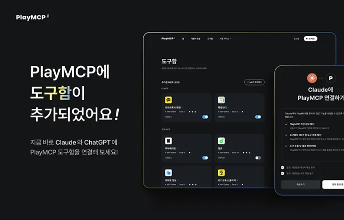 등록된MCP도구선택하고관리⋯계정인증후외부서비스에서바로사용가능카카오계정통해연동절차간소화⋯개인화된AI경험제공[아이뉴스24정유림기자]카카오는지난7월선보인MCP(모델컨텍스트프로토콜)기반의개방형플랫폼'플레이MCP'에도구함기능을추가했다고24일밝혔다.[사진=카카오]플레이MCP는다양한AI모델이외부도구와안전하게연결될수있도록지원하는MCP기반의개방형플랫폼이다.MCP란인공지능모델이외부데이터나도구와소통하는방식을표준화한통신규약으로,이용자가여러서비스를오가지않고하나의서비스에서수요와목적에맞는작업을처리할수있도록지원한다.이번에선보이는도구함은플레이MCP에등록된수많은MCP도구를이용자가선택해한곳에서관리하고이를챗GPT나클로드같은외부AI서비스에서도카카오계정인증1번으로바로사용할수있게해주는핵심기능이다.도구함활용시AI서비스간도구연동절차가간소화된다.이용자는계정인증후플레이MCP를통해자신이선택한MCP도구를AI서비스에서자연스럽게요청할수있다.예를들어"방금알려준내용카카오톡나와의채팅방에보내줘","오늘내일정알려줘","내가받은선물목록보여줘","작년오늘들은멜론노래다시틀어줘"등과같이요청시이를수행해준다.이용자는플레이MCP사이트에접속한뒤카카오계정로그인을거쳐원하는MCP도구를자유롭게도구함에추가해하면된다.이후외부서비스인챗GPT에서'개발자모드'를선택한뒤맞춤형MCP서버링크(URL)를등록한뒤도구함을인증하면사용가능하다.클로드에서는설정선택후커스텀커넥터에플레이MCP도구함을연결하면사용할수있다.두서비스모두단한번의카카오계정을통해도구함에담긴모든도구를즉시사용할수있게된다.별도의개별도구인증없이카카오계정인증하나로모든MCP등록도구를호출할수있다는점,이용자의실제카카오데이터와연동돼개인화된경험을제공한다는점이특징이다.카카오는향후도구함을통해카카오서비스뿐아니라다양한외부파트너의MCP도구까지폭넓게연결해플레이MCP를국내외AI생태계의허브플랫폼으로발전시킬계획이다.이를통해개발자와이용자모두가더쉽게AI기능을확장하고활용할수있는개방적이고안전한환경을제공한다는방침이다.유용하카카오AI에이전트플랫폼성과리더는"플레이MCP에추가된도구함기능은AI가단순한대화상대를넘어이용자의실제일상을이해하고실행하는'일상AI'로진화할수있다는것을의미한다"며"개발자와이용자가에이전틱AI경험을보다확장해갈수있도록플랫폼을고도화할것"이라고밝혔다./정유림기자([email protected])Copyright©아이뉴스24.무단전재및재배포금지.